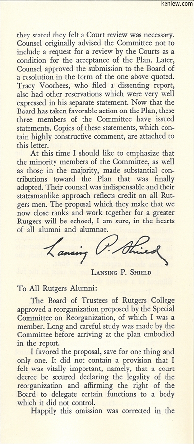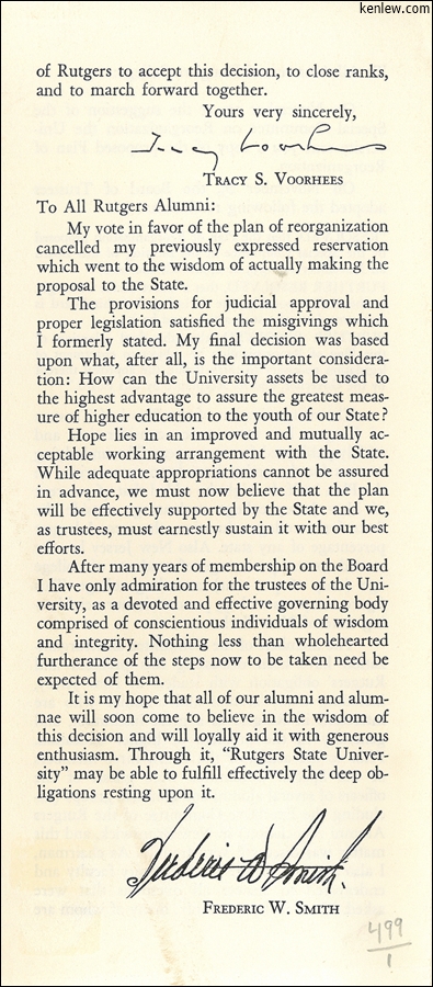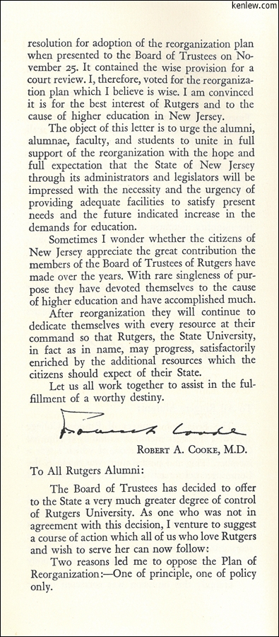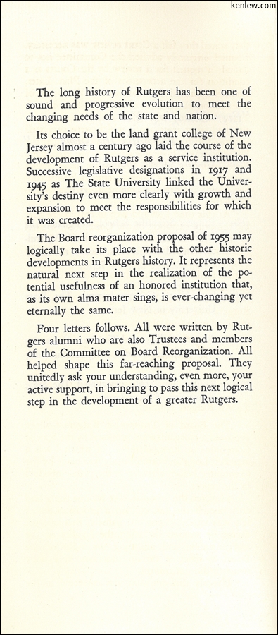 “Ever Changing, Yet Eternally the Same.” Four letters in support of the 1955 Rutgers reorganization proposal