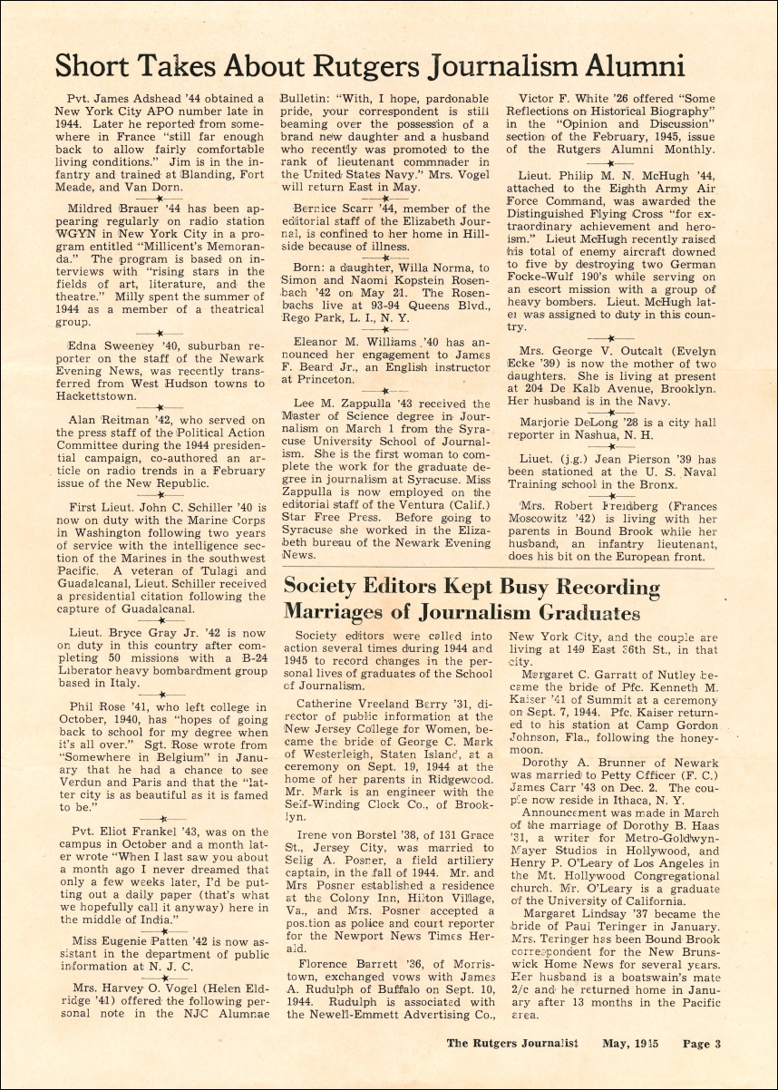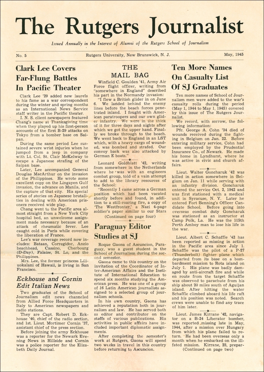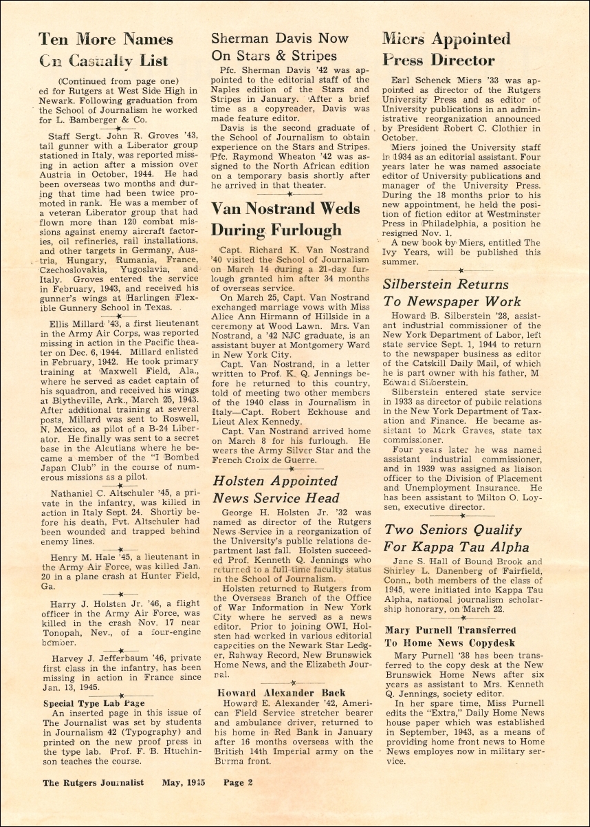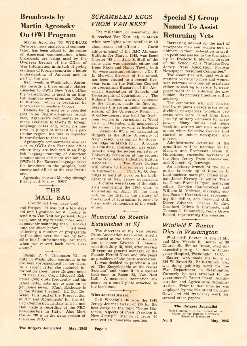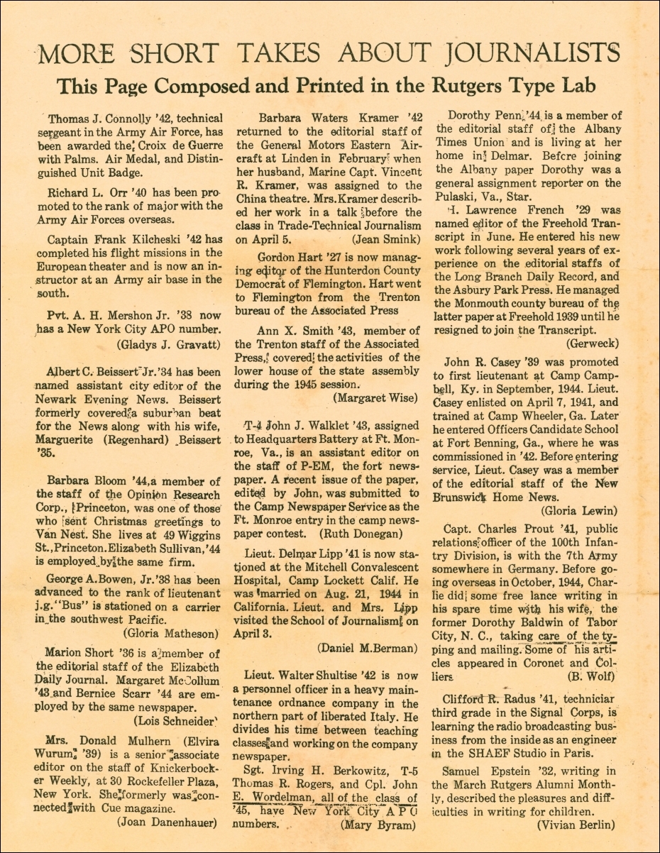 Rutgers Journalist. Issued Annually in the Interest of Alumni of Rutgers School of Journalism.