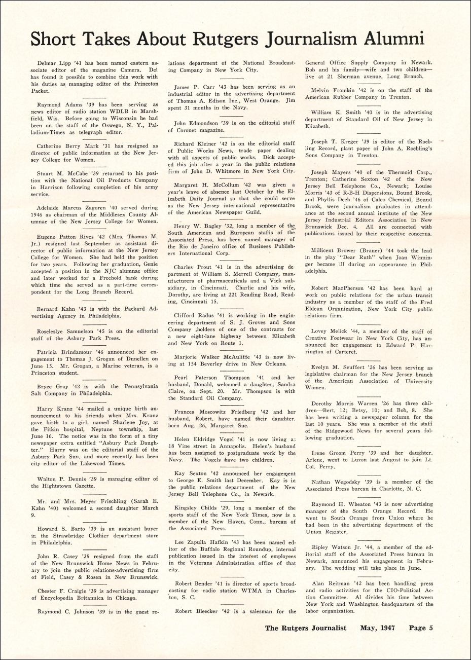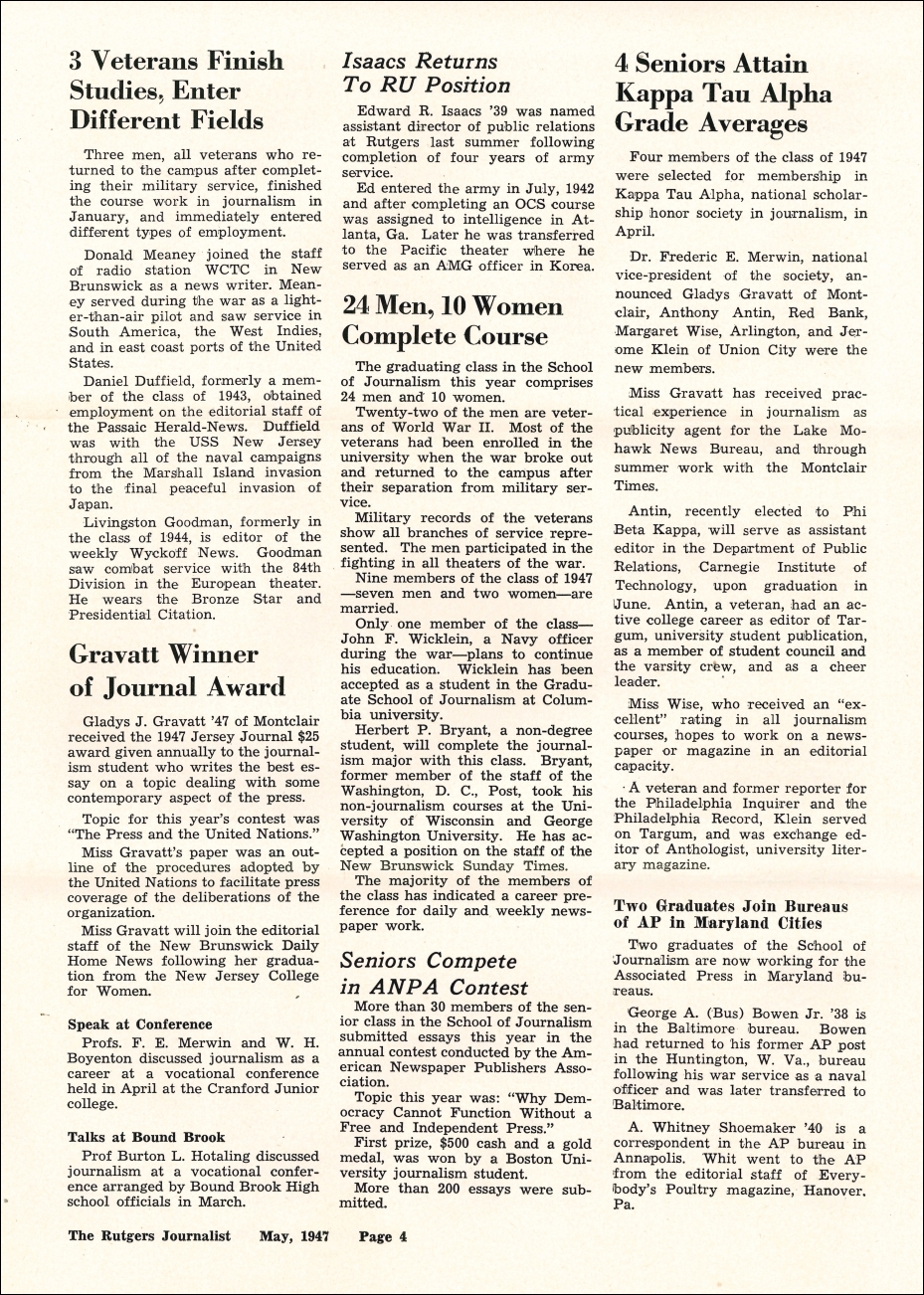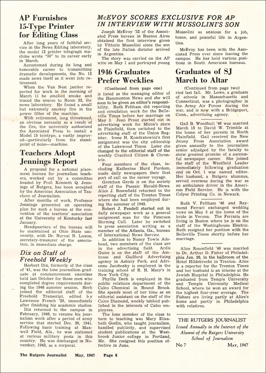 Rutgers Journalist. Issued Annually in the Interest of Alumni of Rutgers School of Journalism.
