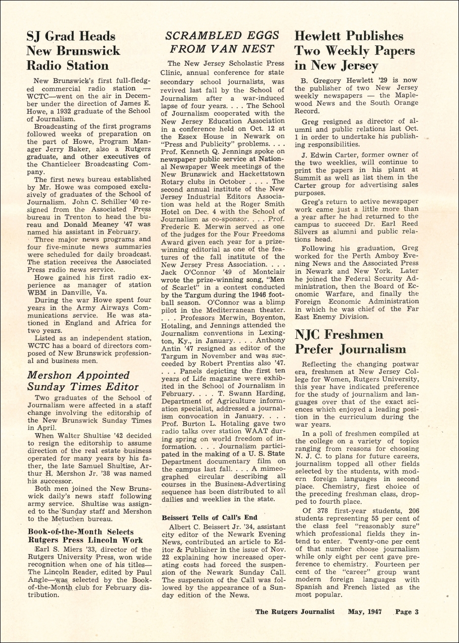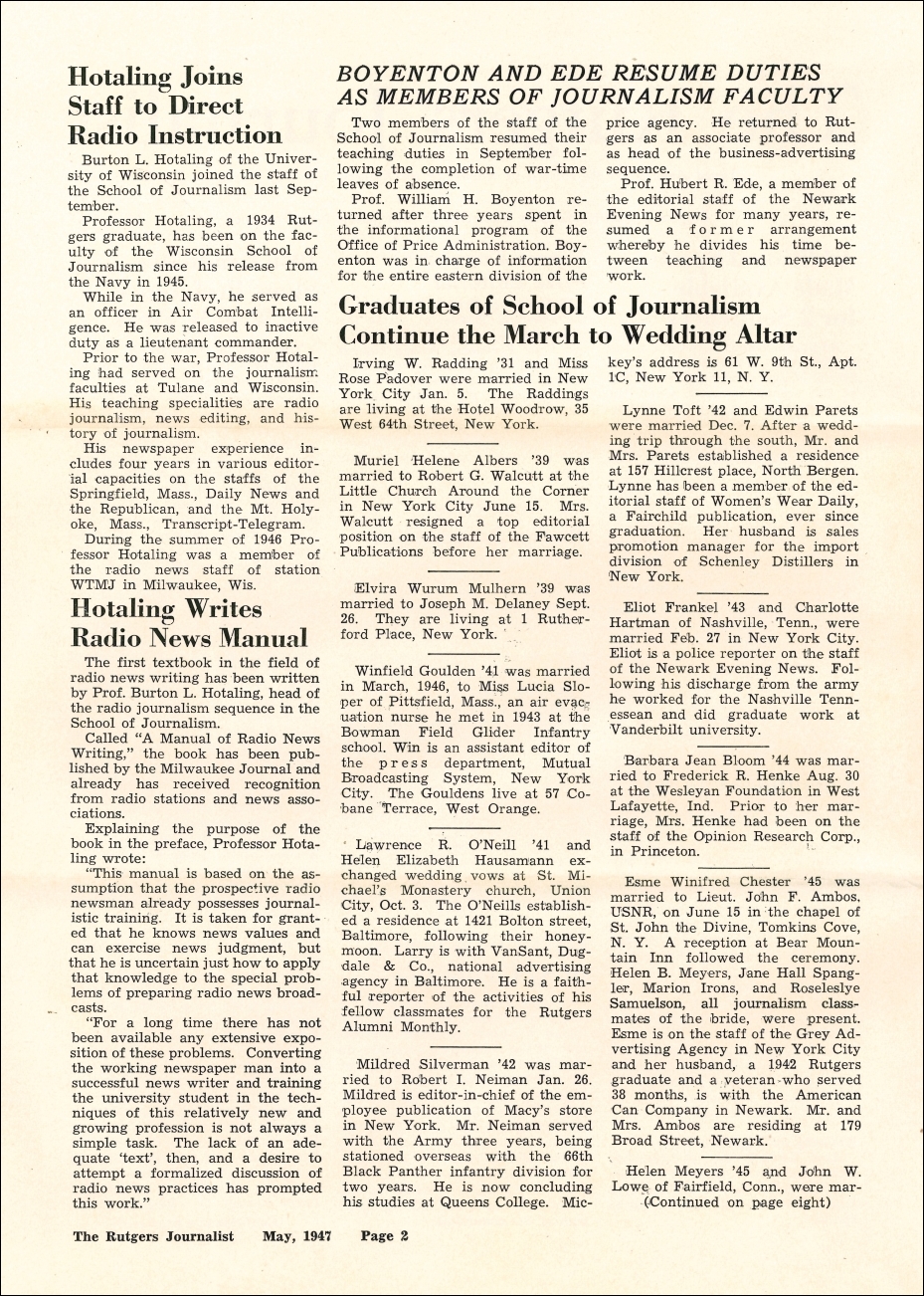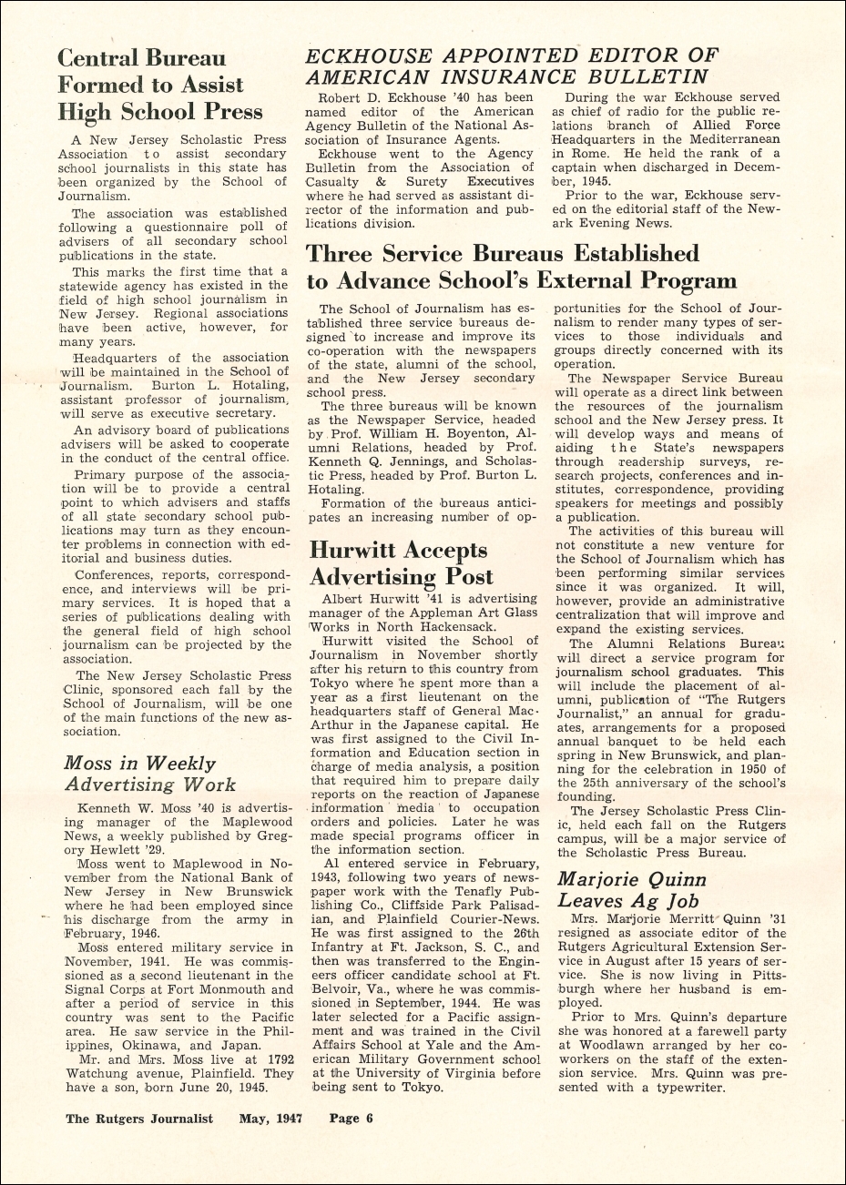 Rutgers Journalist. Issued Annually in the Interest of Alumni of Rutgers School of Journalism.