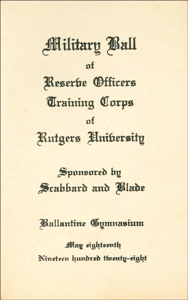 Dance Card. Military Ball of Reserve Officers Training Corps.