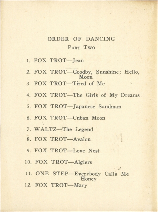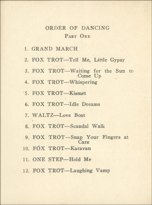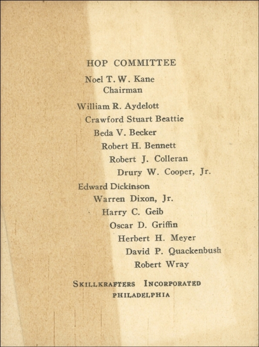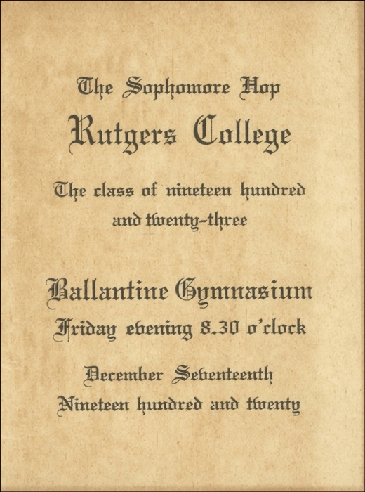 Rutgers College Sophomore Hop Dance Card