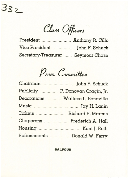 Rutgers University Junior Promenade Dance Card.