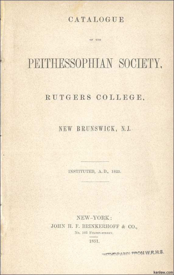 Catalogue of the Peithessophian Society, Rutgers College, New Brunswick, N.J. 1851