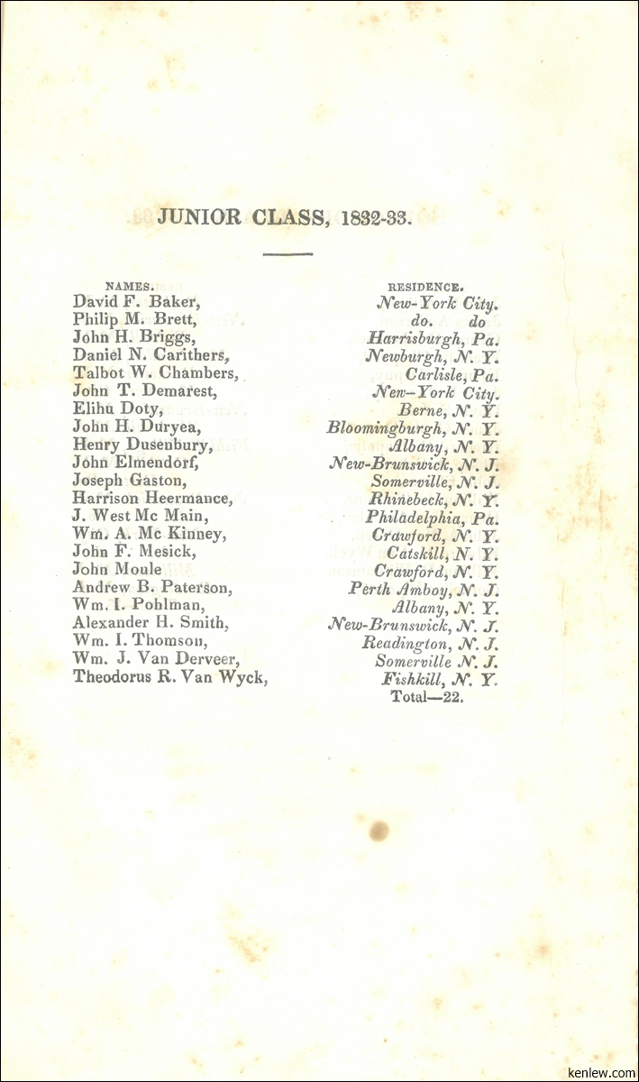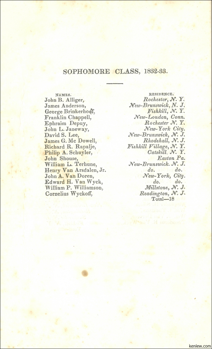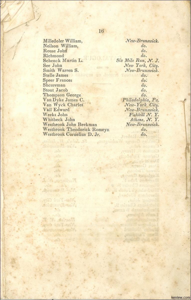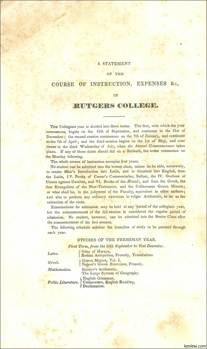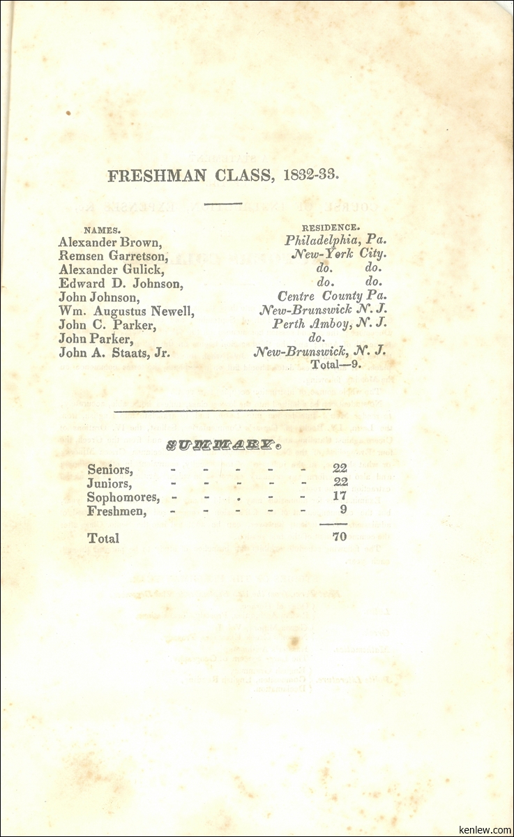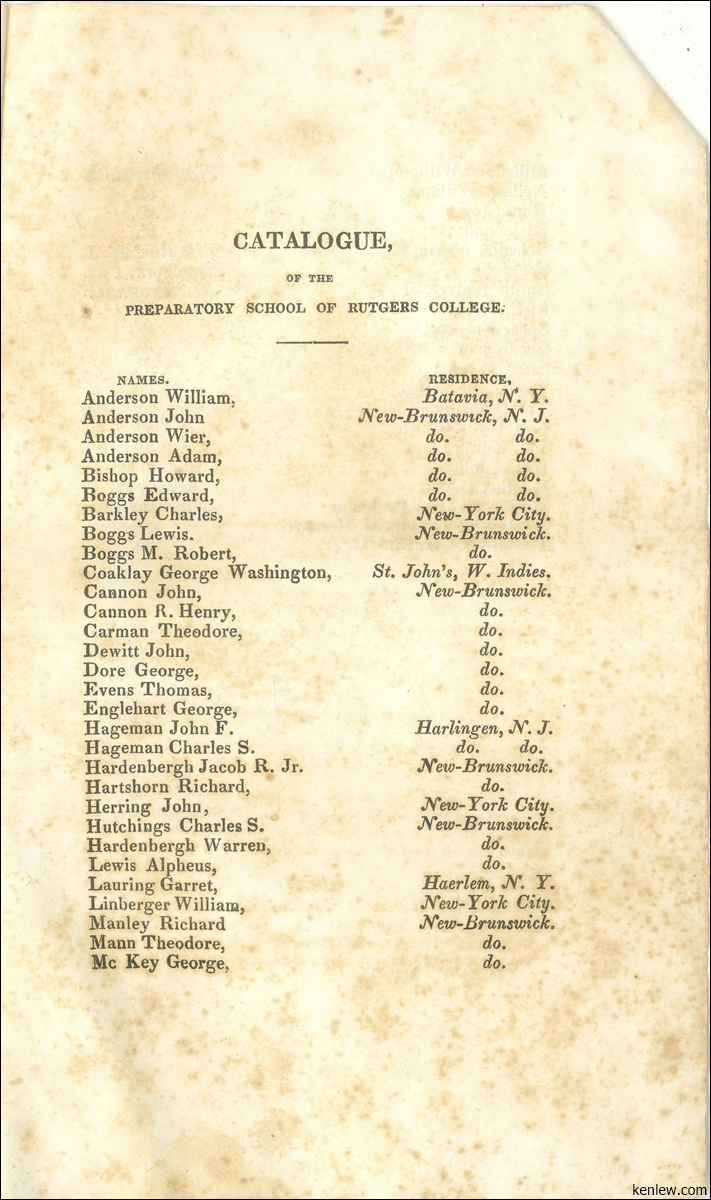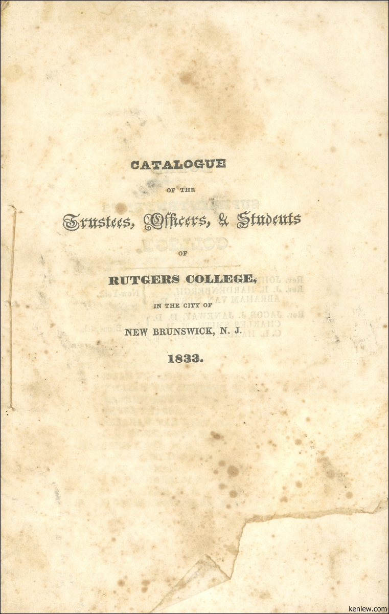 Catalogue of the Trustees, Officers, & Students of Rutgers College in the City of New Brunswick, N.J. 1833