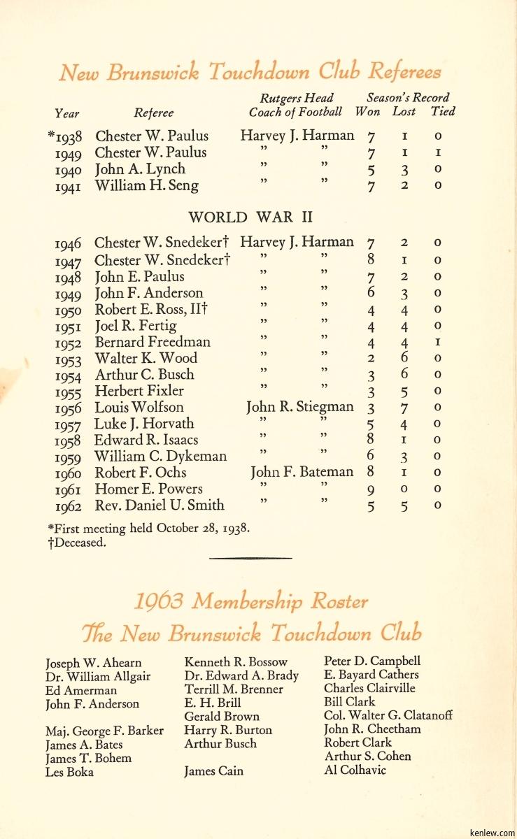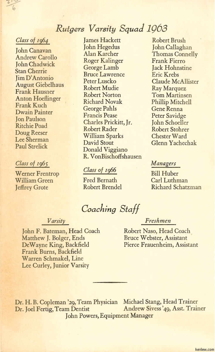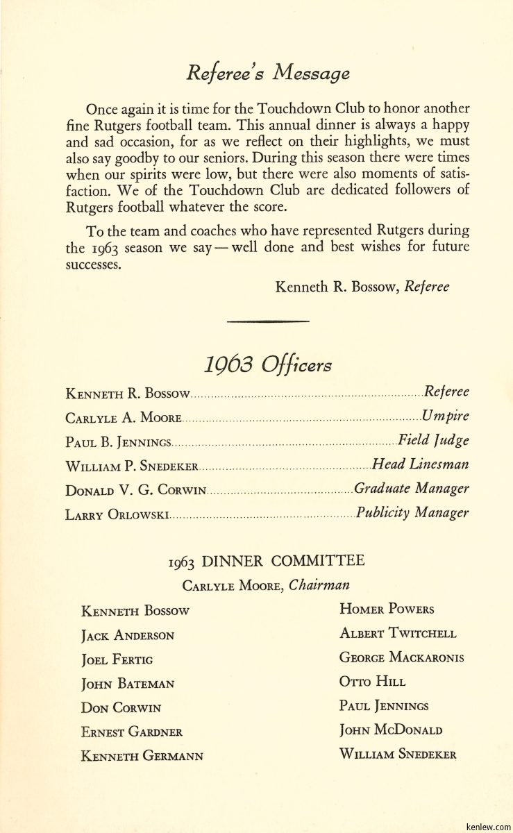 22nd Annual Dinner Honoring the Rutgers University Varsity Football Squad