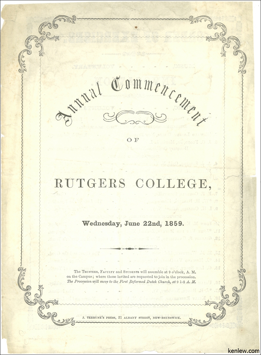 Annual Commencement of Rutgers College. June 22nd, 1855