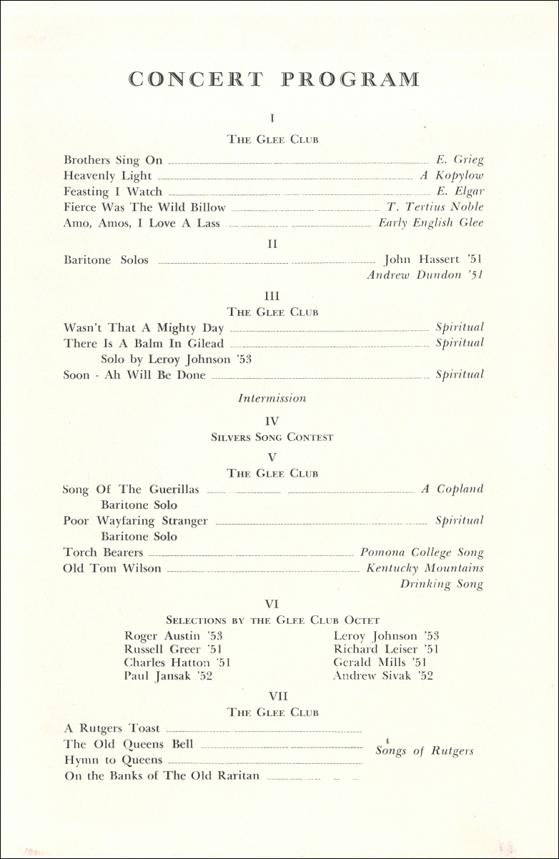 Annual Spring Concert of the Rutgers University Glee Club. May 9, 1951