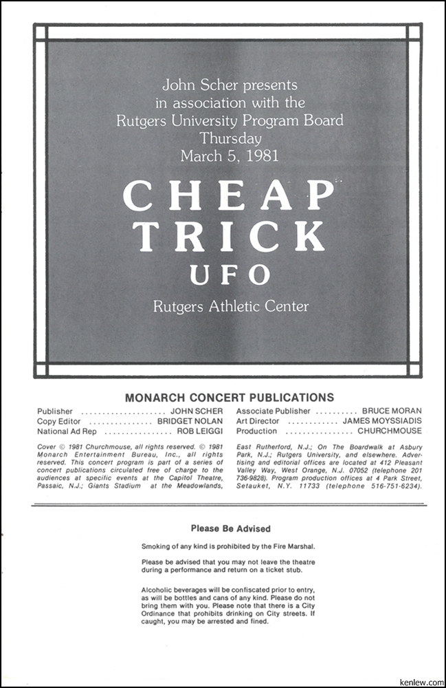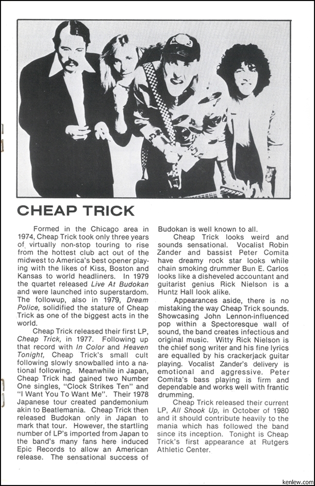Cheap Trick and UFO at Rutgers. March 5, 1981