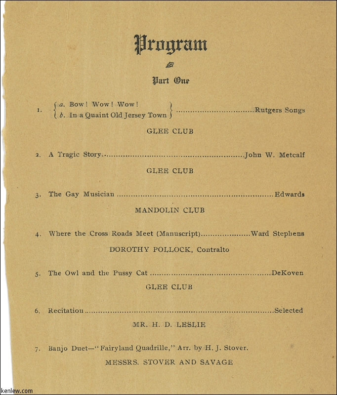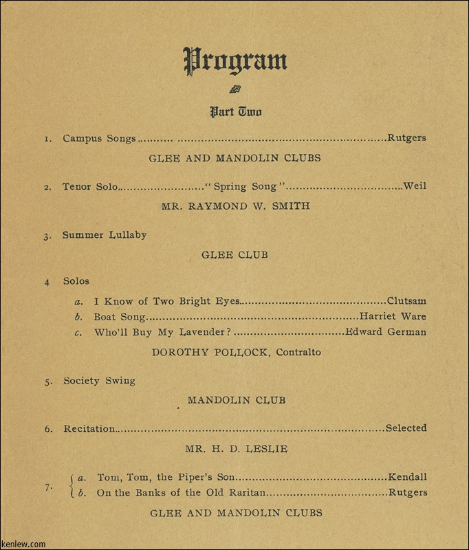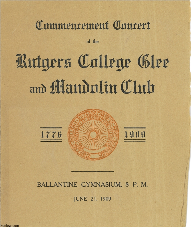 Commencement Concert of the Rutgers College Glee and Mandolin Club. June 21, 1909