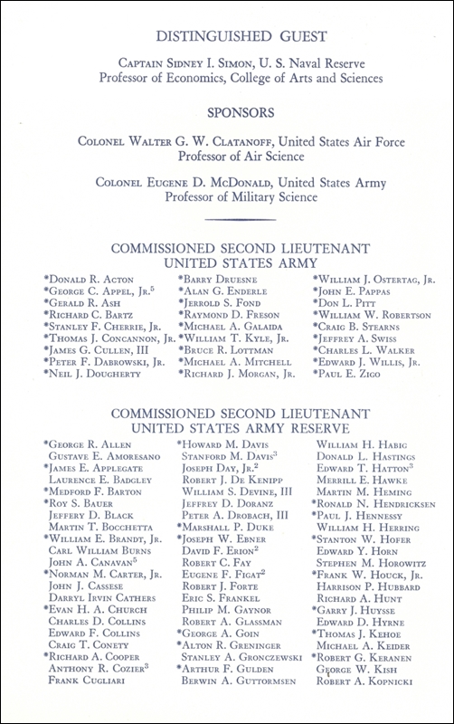 Commissioning Ceremony of the Class of 1964. Sponsored by the Division of Military Education
