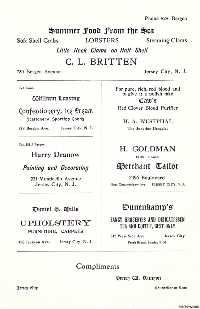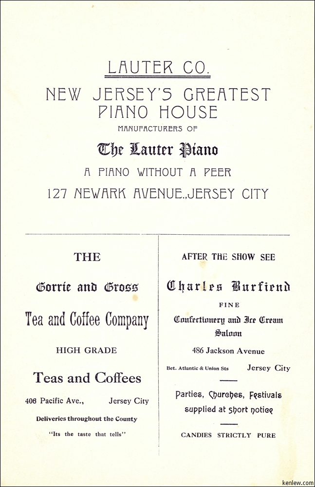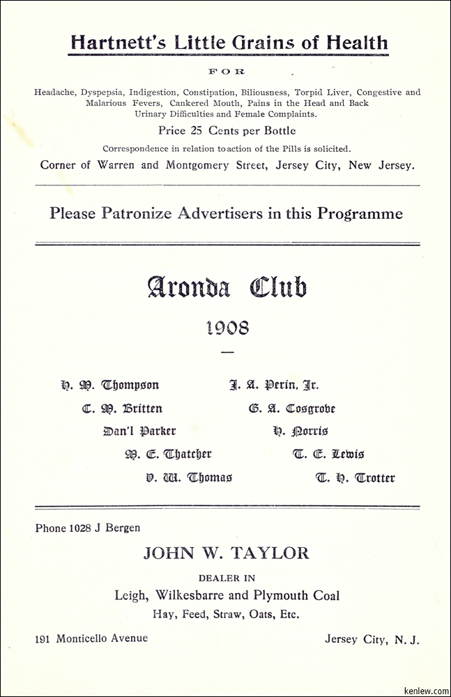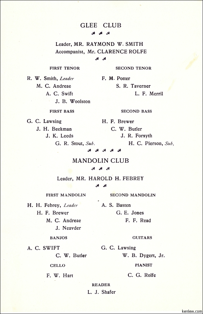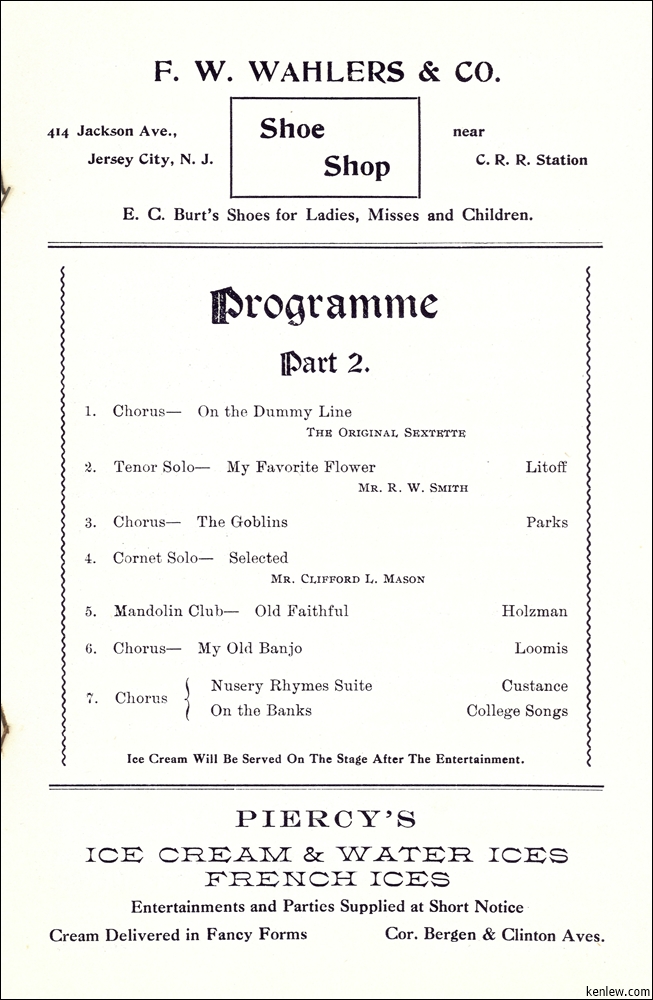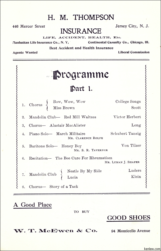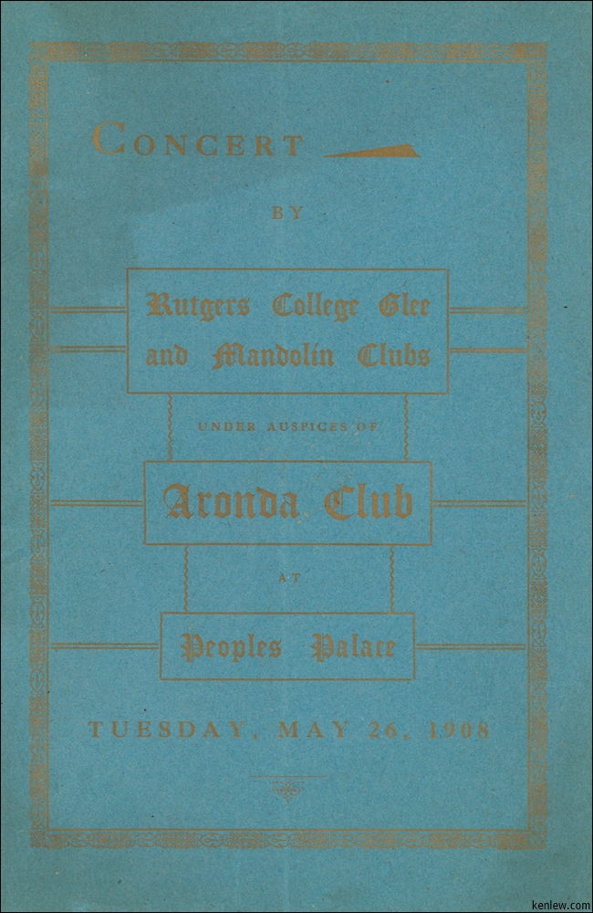 Concert by Rutgers Glee and Mandolin Clubs Under the Auspices of Aronda Club at Peoples Palace. May 26, 1908
