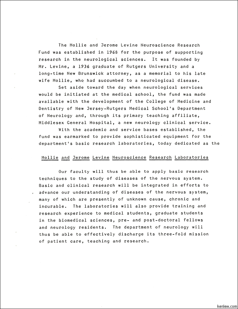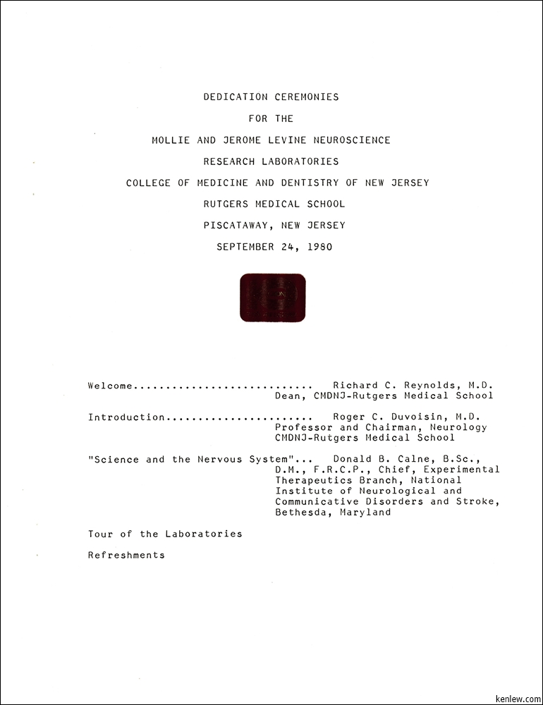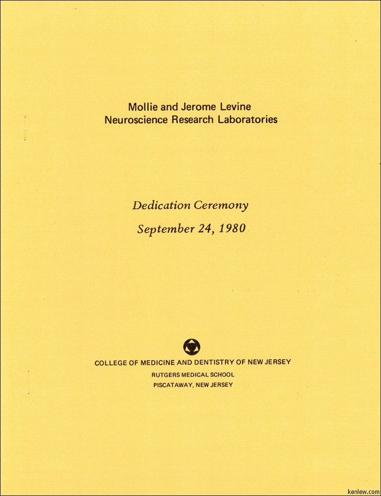 Mollie and Jerome Levine Neuroscience Research Laboratories Dedication Ceremony. September 24, 1980