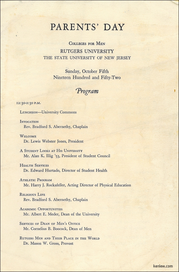 Parent’s Day, College for Men, Rutgers the State University of New Jersey. October 5, 1952