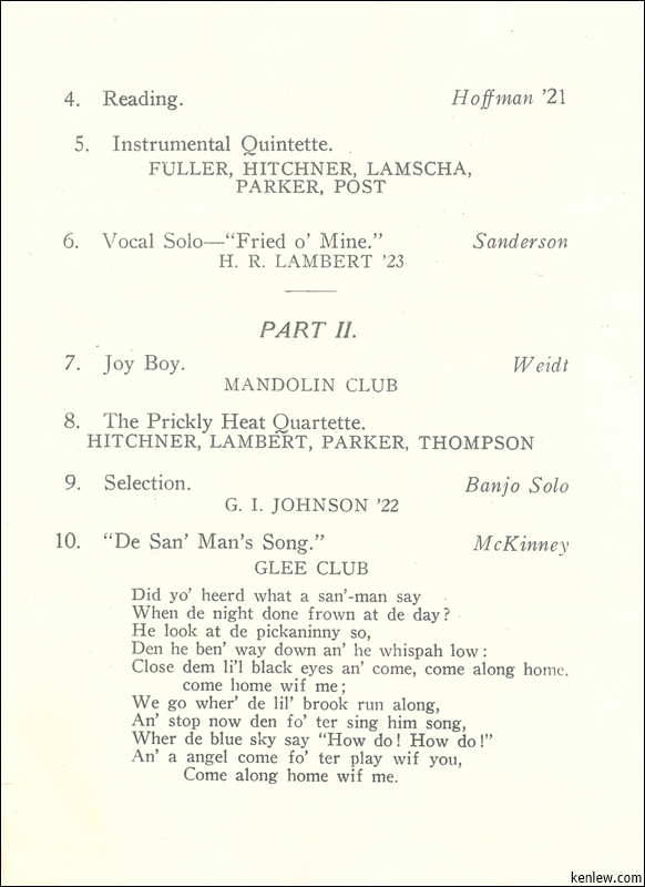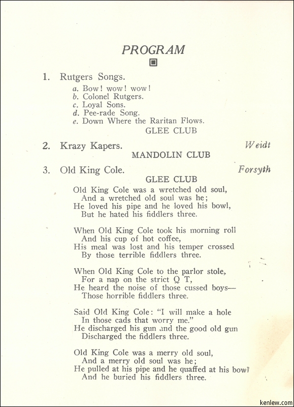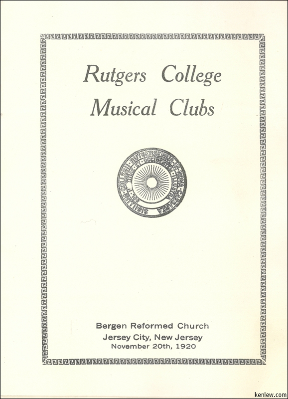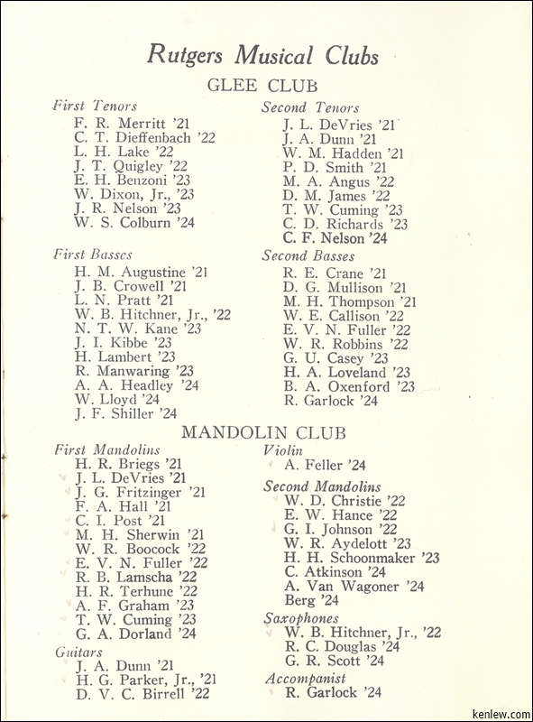 Rutgers College Musical Clubs. November 20th, 1920