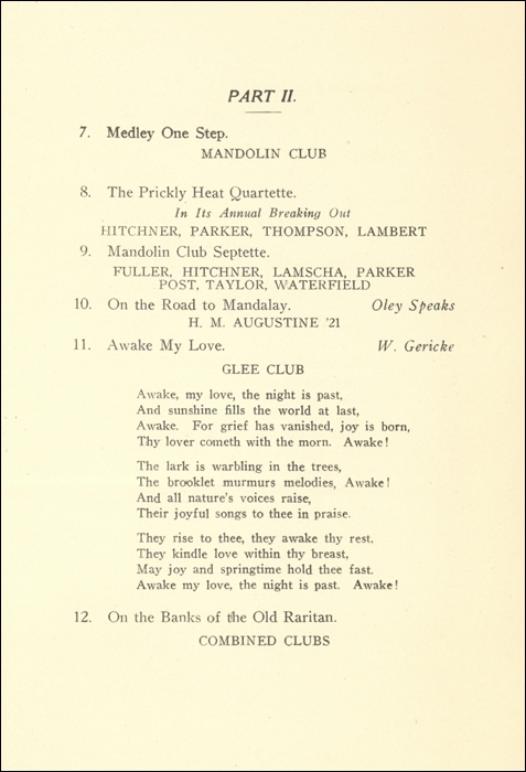 Rutgers Glee and Mandolin Clubs. April 9, 1920