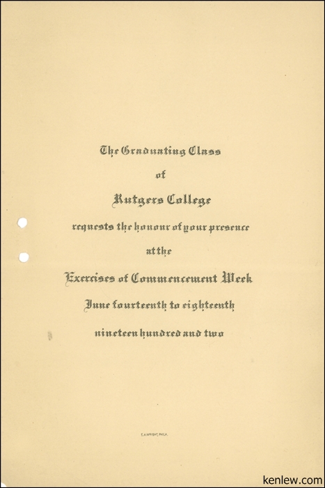 Rutgers University Commencement Week. 1917.