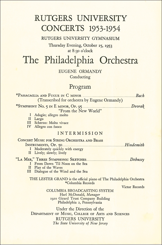 Rutgers University Concerts 1953-1954. The Philadelphia Orchestra. October 15, 1953