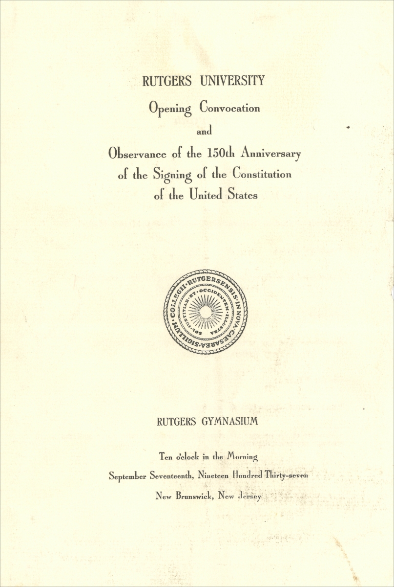 Rutgers University Opening Convocation. September 27, 1937