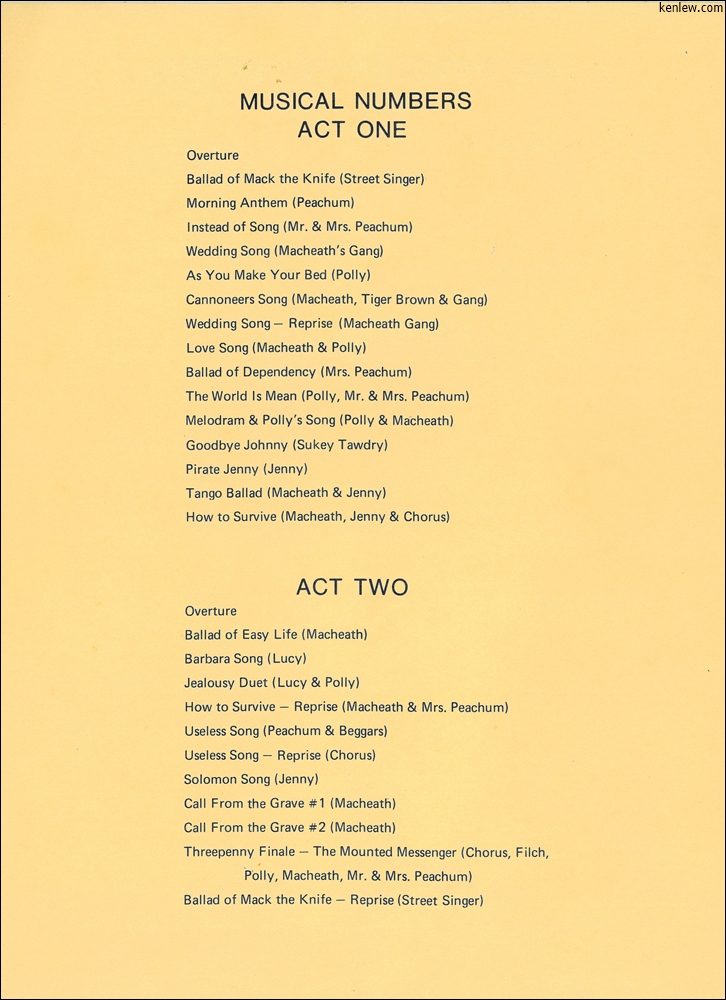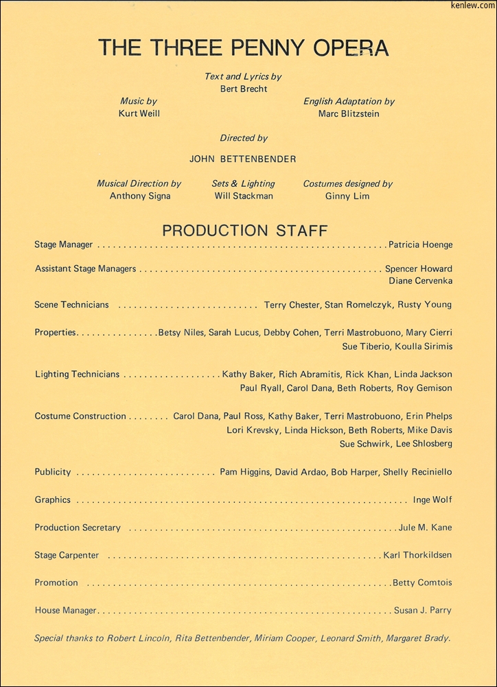 Three Penny Opera. Rutgers Department of Theater Arts. March, 1972