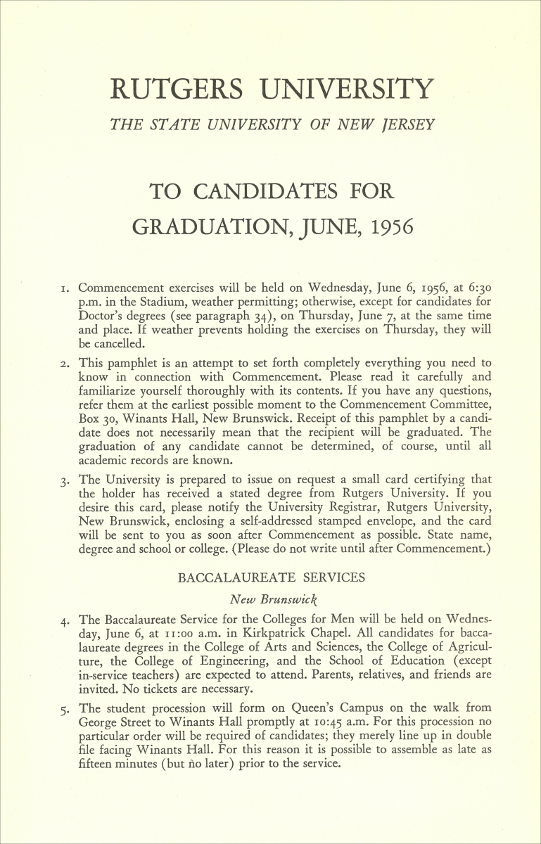 To Candidates for Graduation. June, 1956.