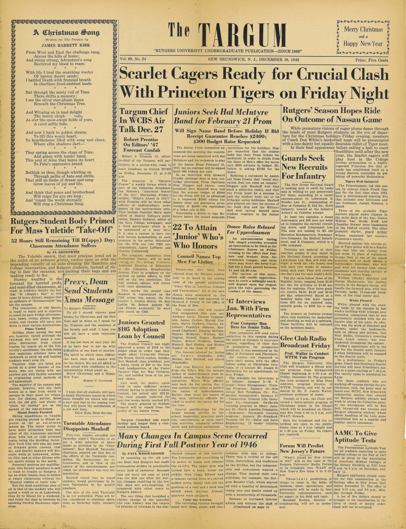 Targum. Vol.LXXXVIII, No.24. December 18, 1946
