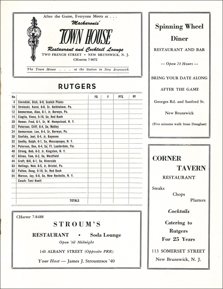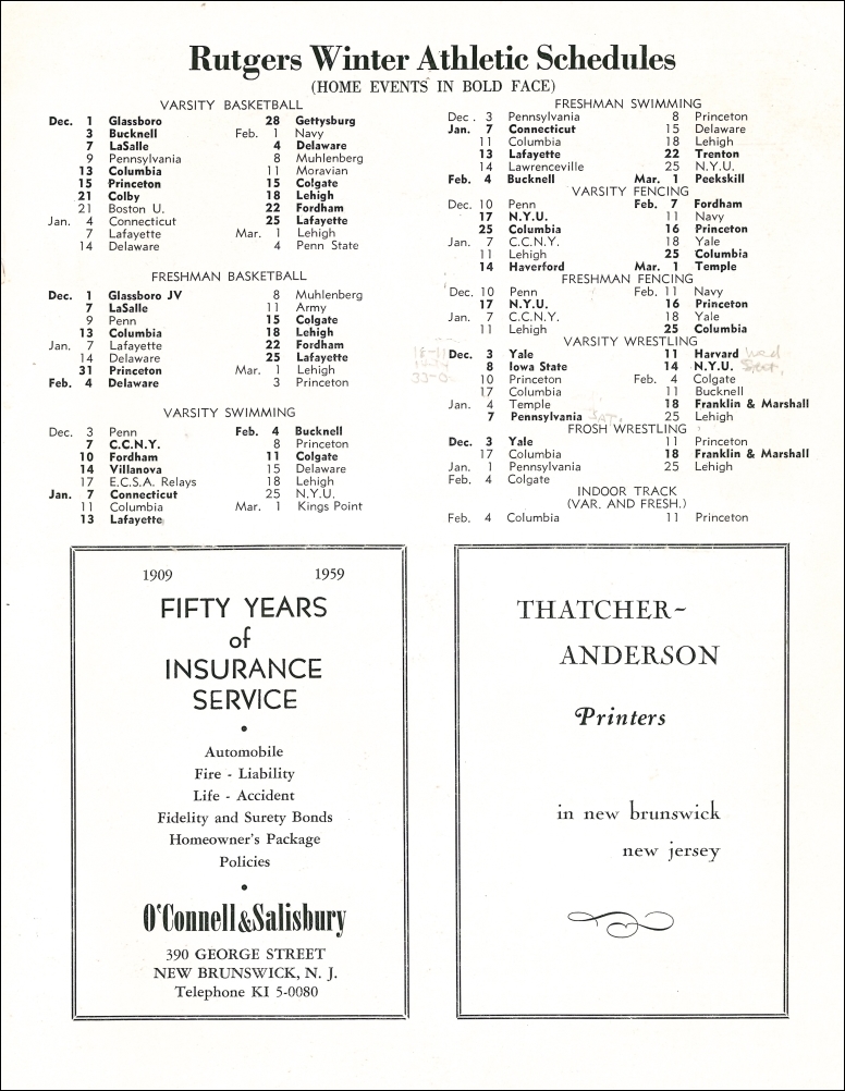 Rutgers Athletic News. December 1,3, 1960