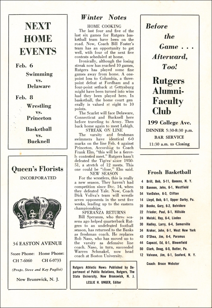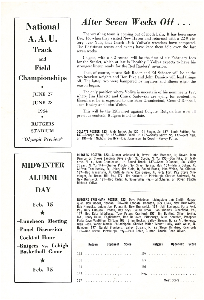 Rutgers Athletic News. February 1964.