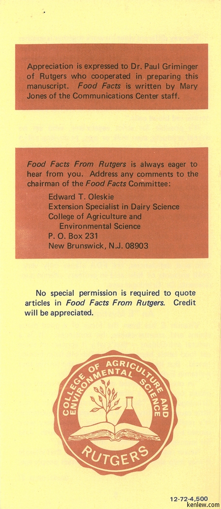 Food Facts from Rutgers College of Agriculture & Environmental Science. Jul-August, 1972