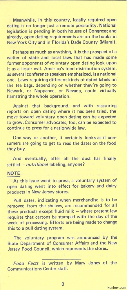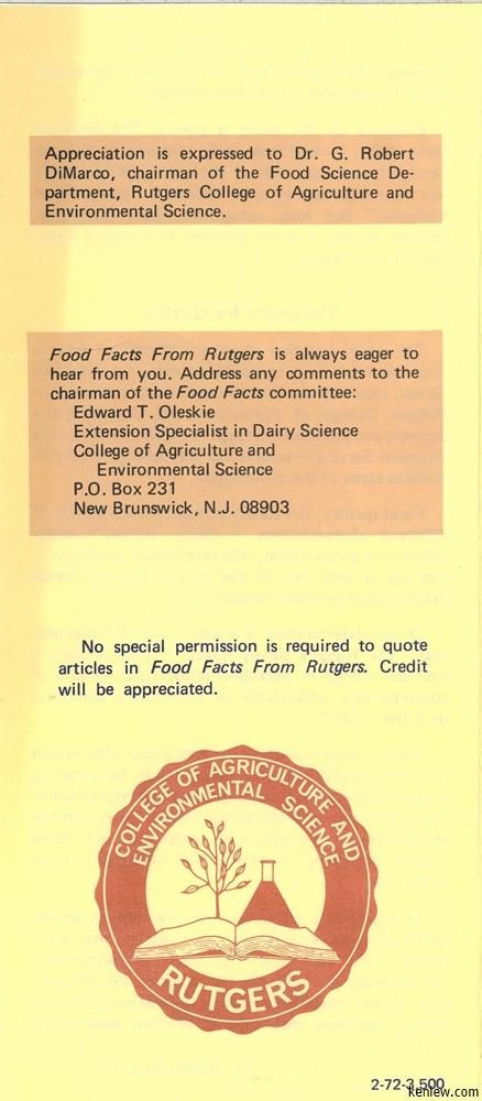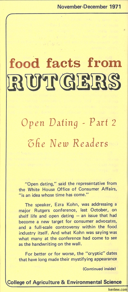 Food Facts from Rutgers College of Agriculture & Environmental Science. November-December, 1971