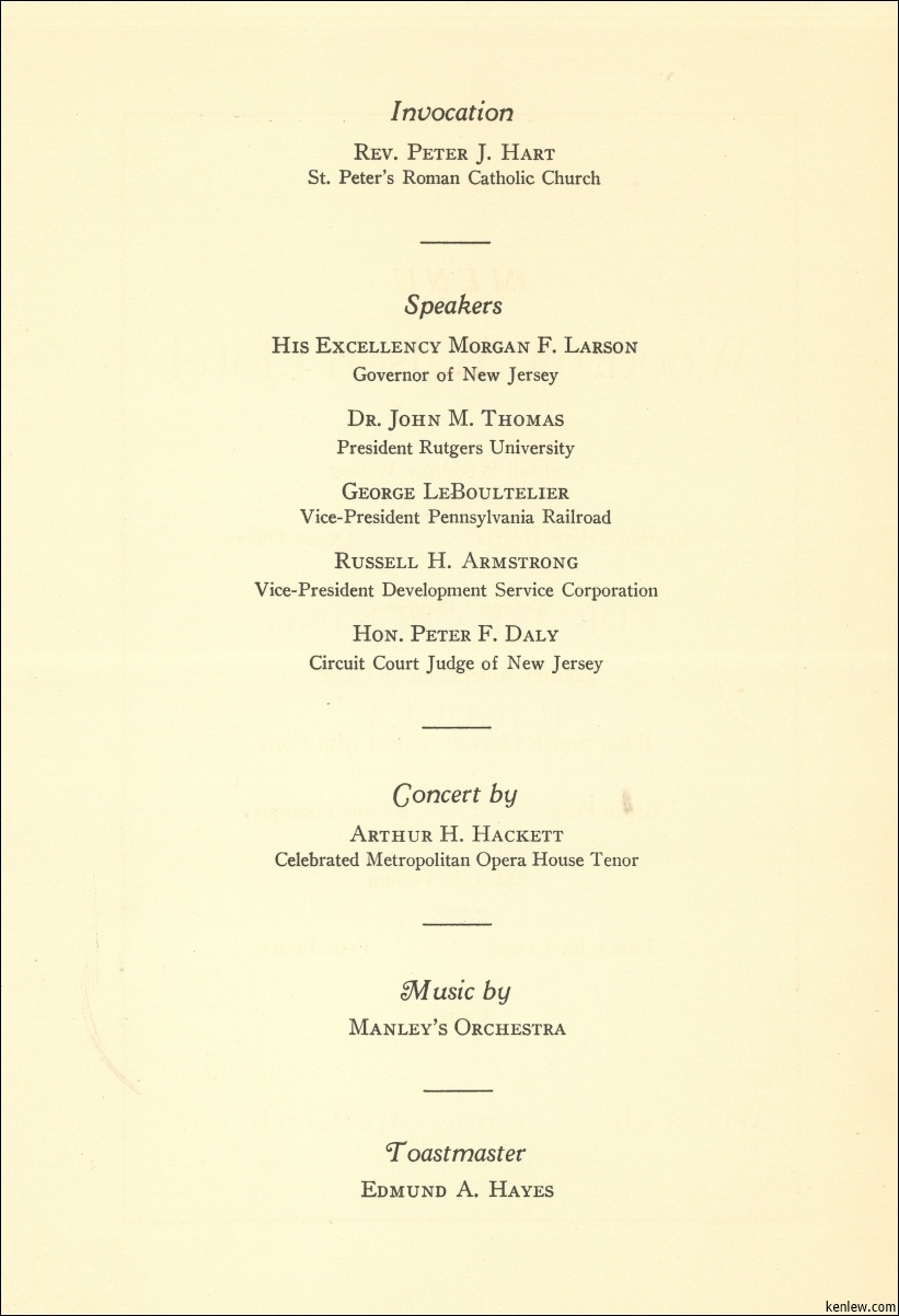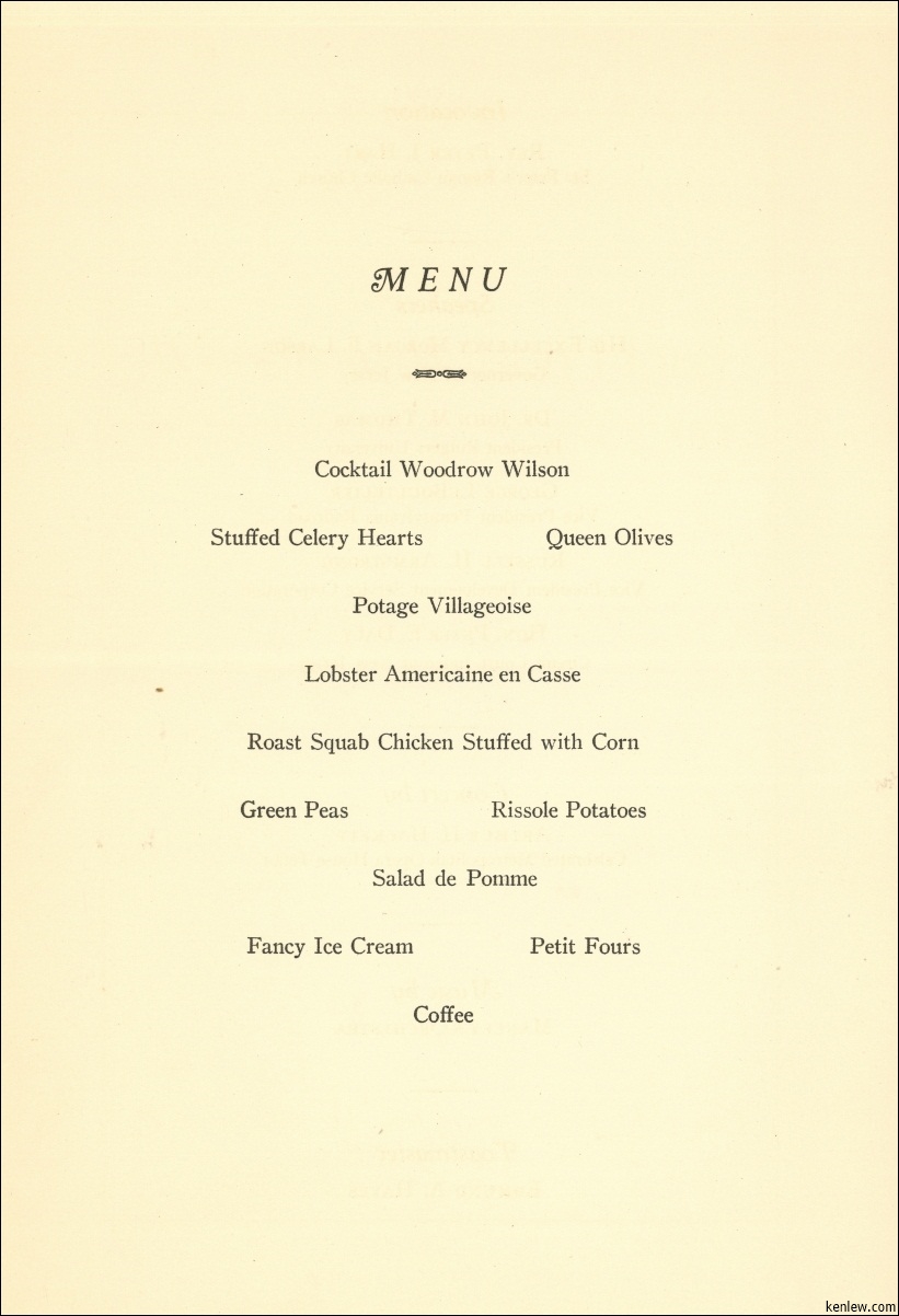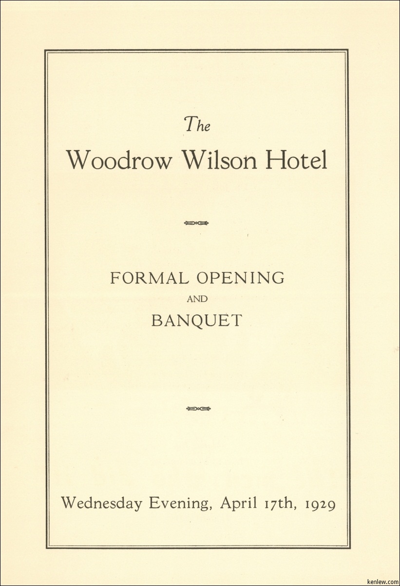Woodrow Wilson Hotel Formal Opening and Banquet.
