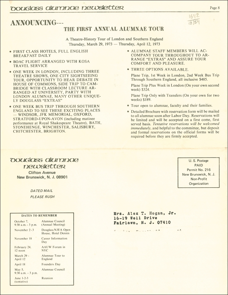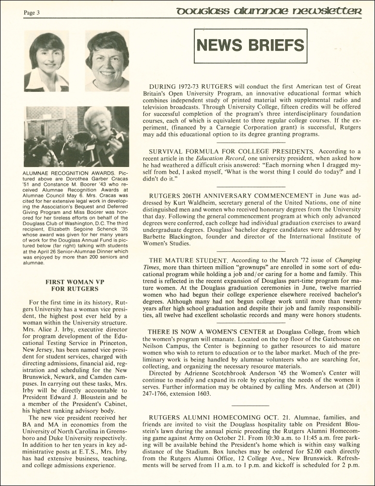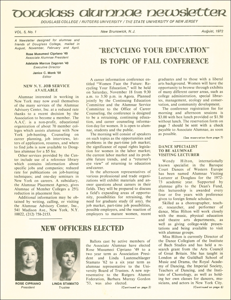 Douglass Alumnae Newsletter. Vol.05, No.1. August, 1972