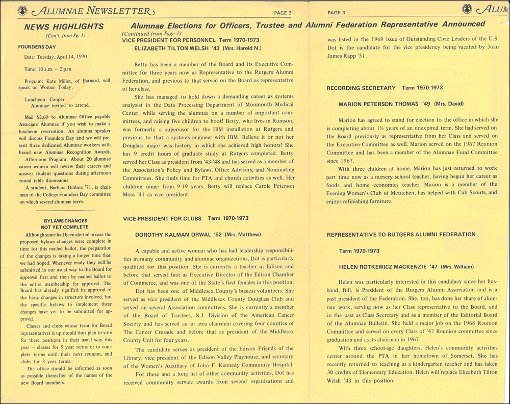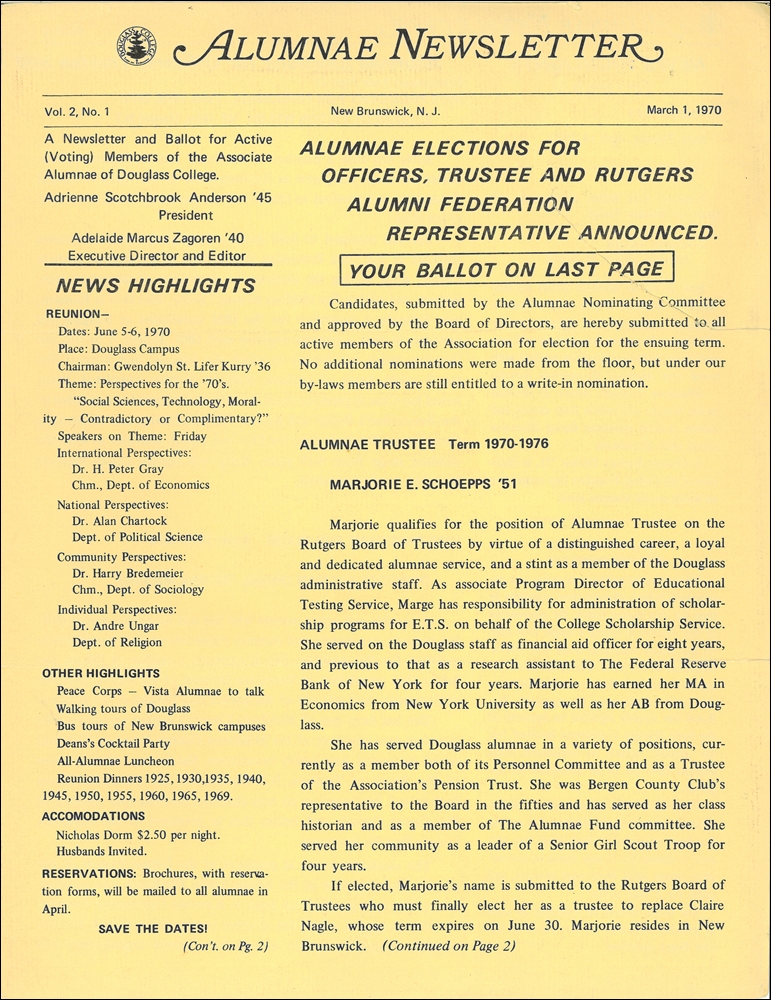 Douglass Alumnae Newsletter. Vol.2, No.1. March 1, 1970
