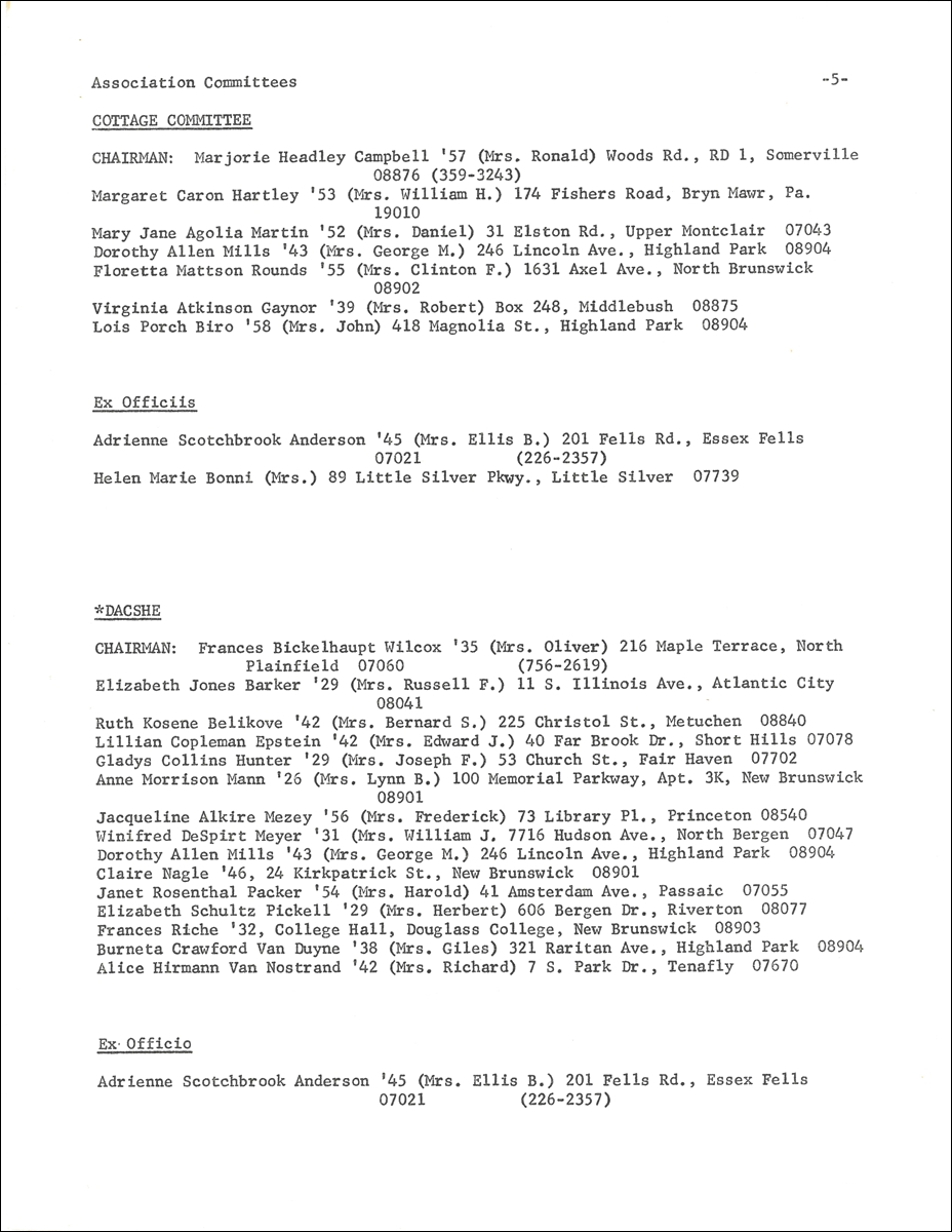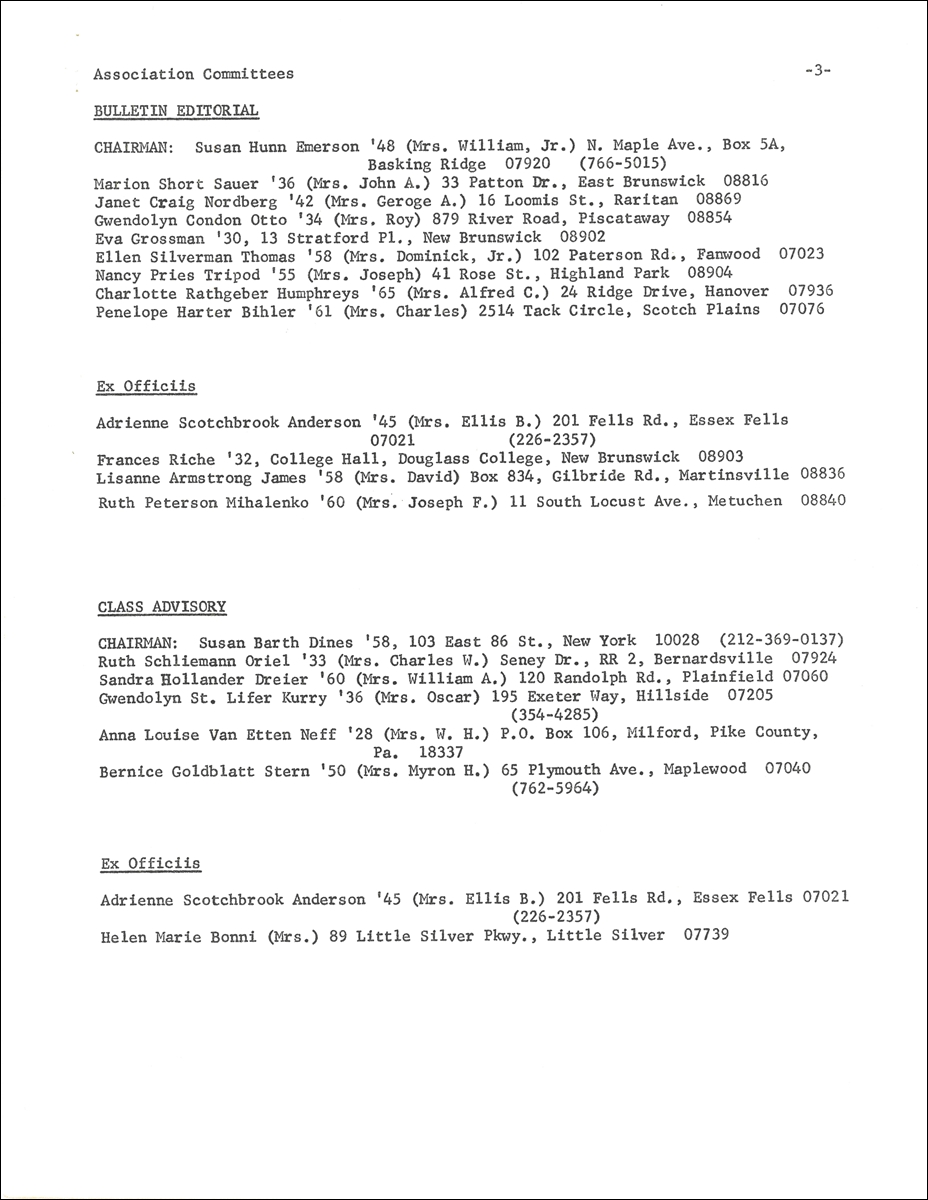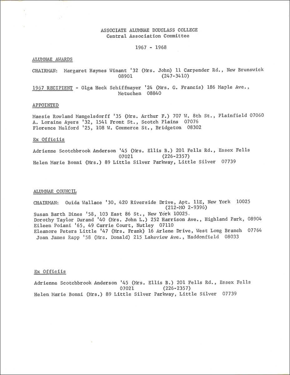 Associate Alumnae, Douglass College, Central Association Committee. 1967-1968