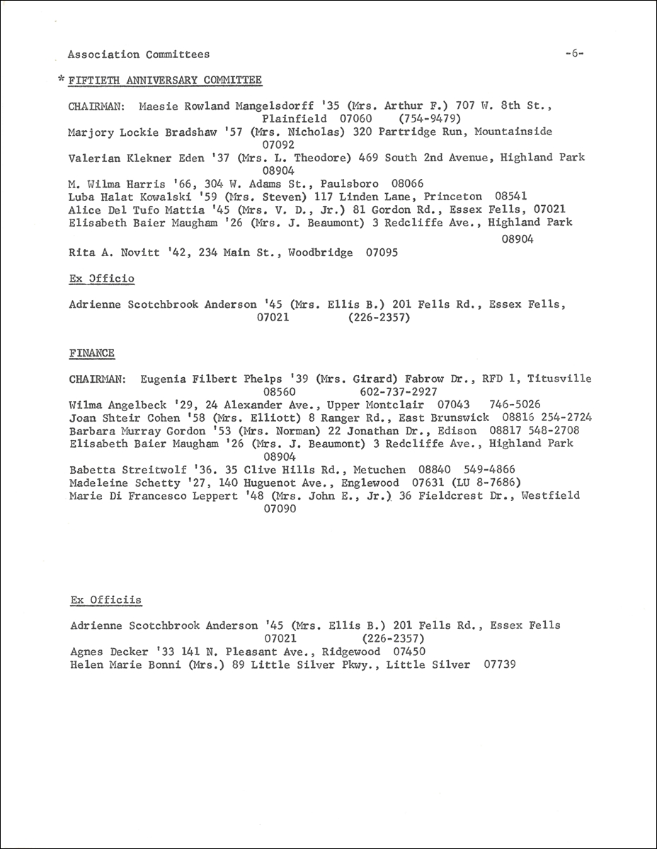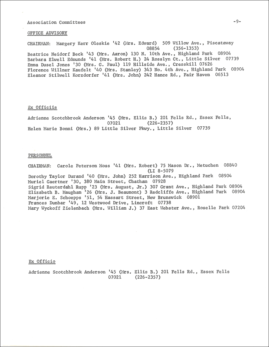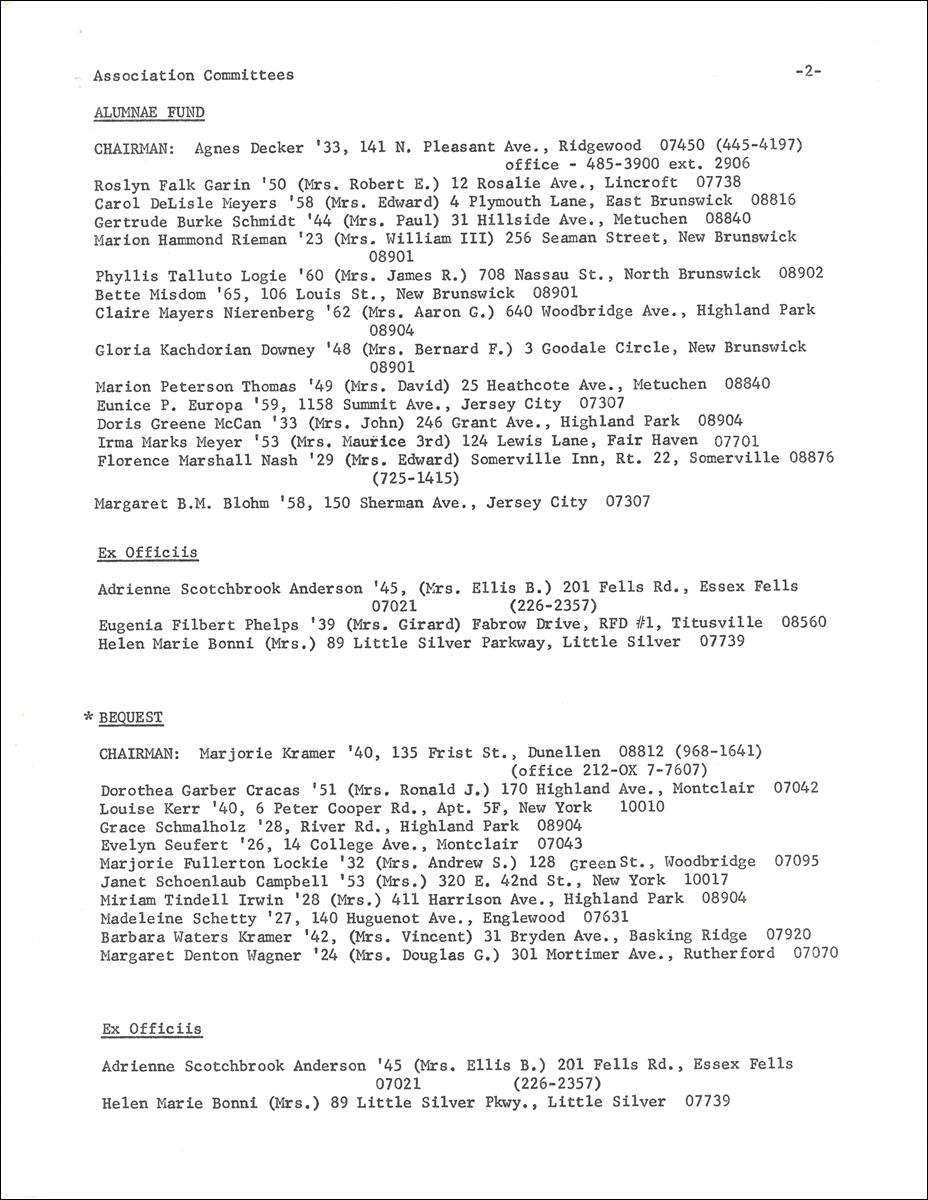 Associate Alumnae, Douglass College, Central Association Committee. 1967-1968