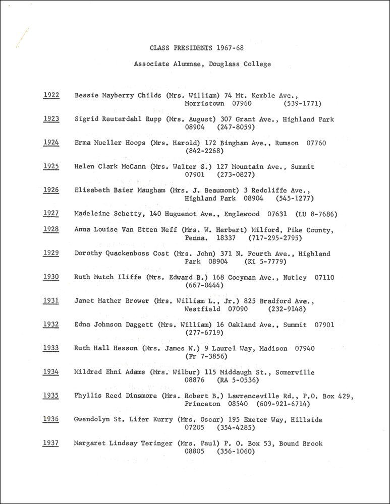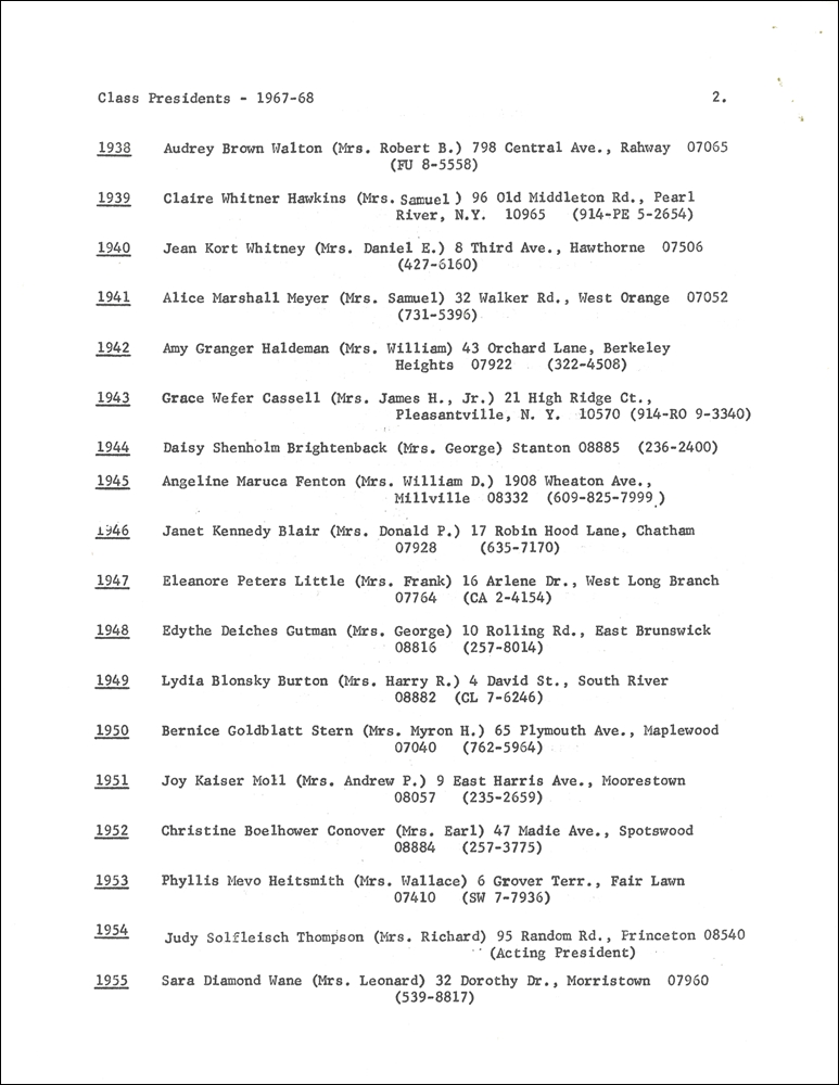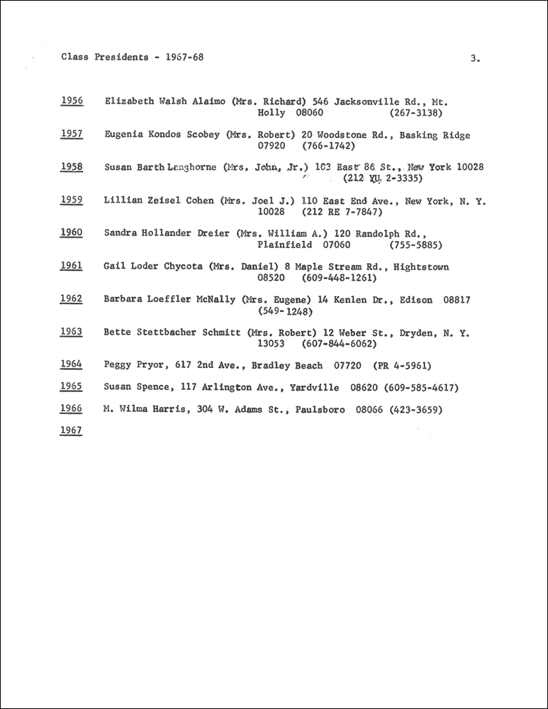 Class Presidents - 1967-68. Associate Alumnae, Douglass College
