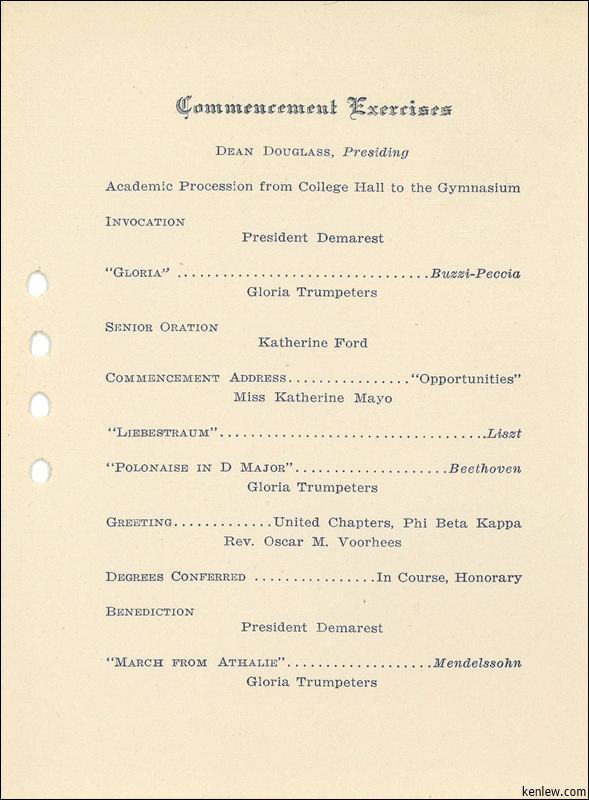 New Jersey College for Women 2nd Commencement and Commencement week events