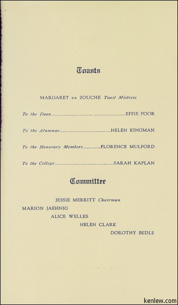 Senior Luncheon, New Jersey College for Women. The Commodore, New York City. April 4, 1925 (Possibly Incomplete)