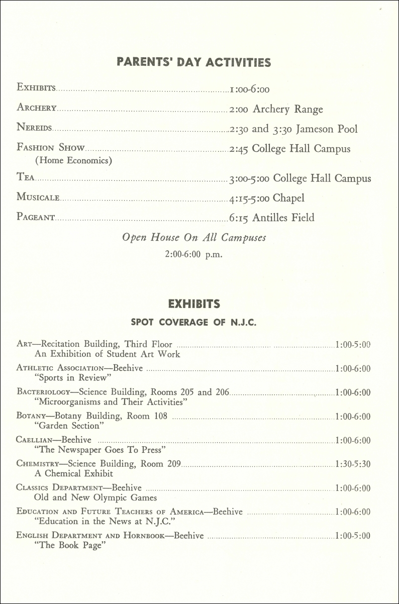 Parent’s Day Festivities Presented by the Athletic Association of New Jersey College for Women