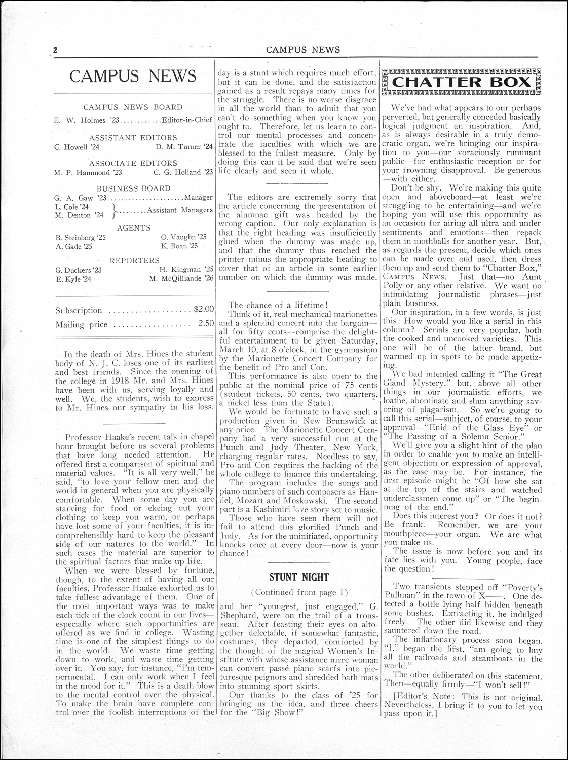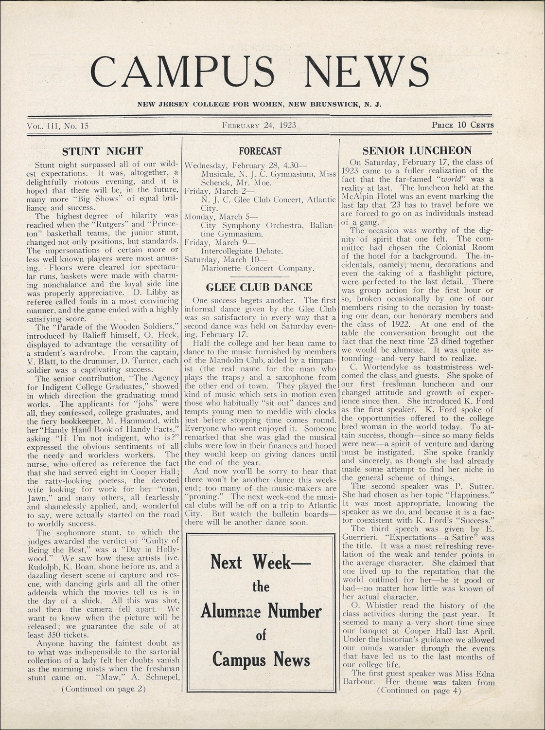 Campus News. Vol.03, No.15. February 24, 1923