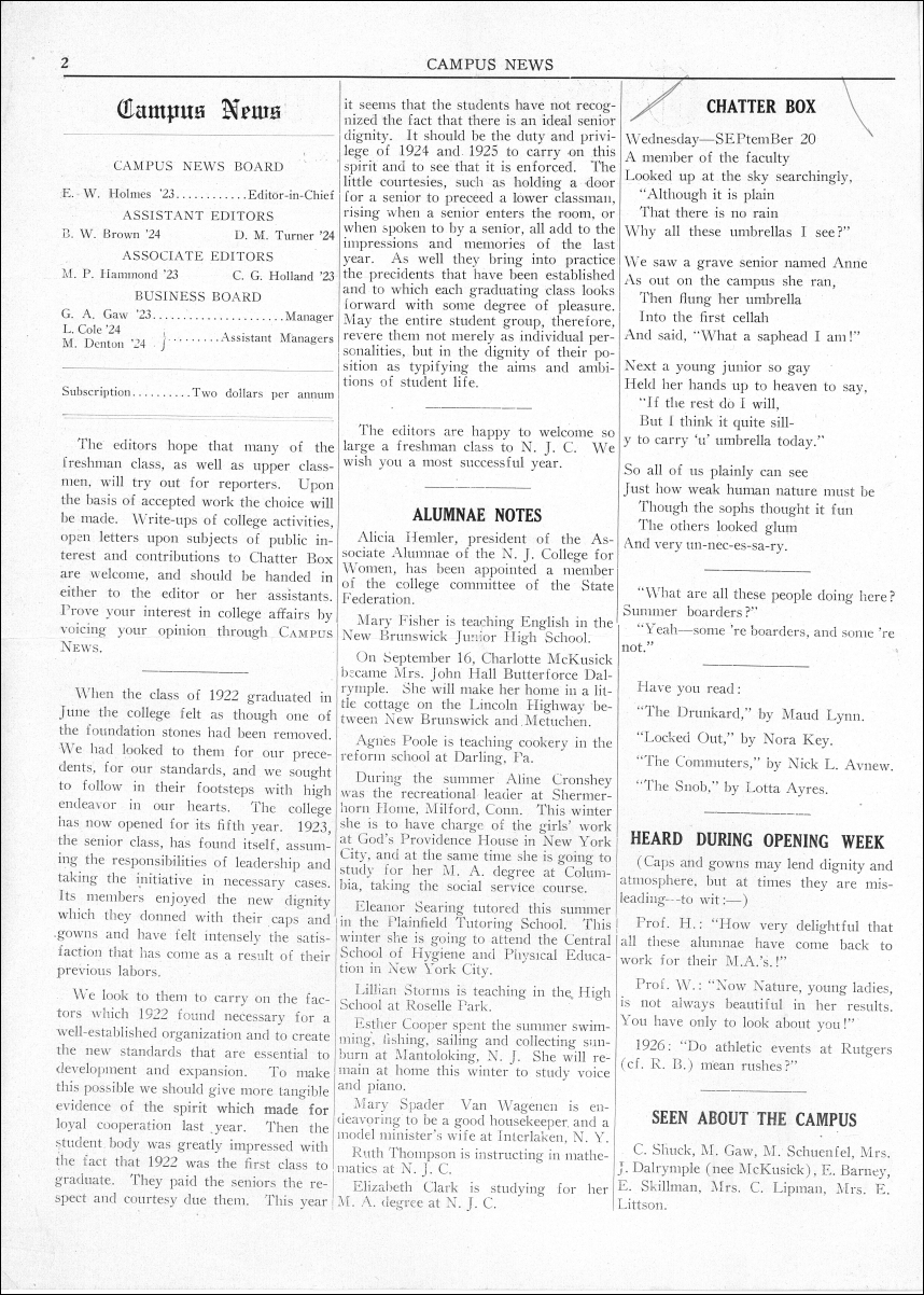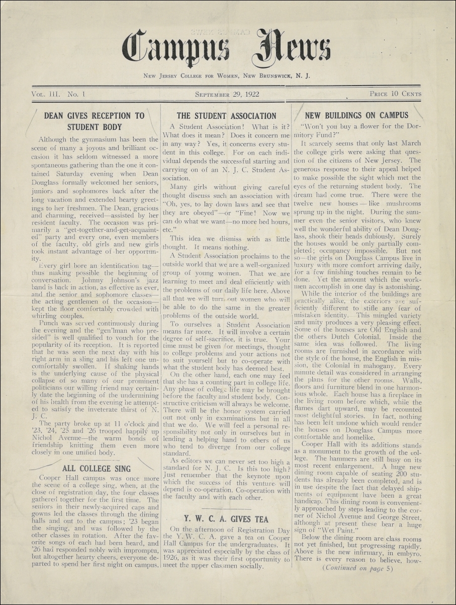 Campus News. Vol.03, No.1. September 29, 1922