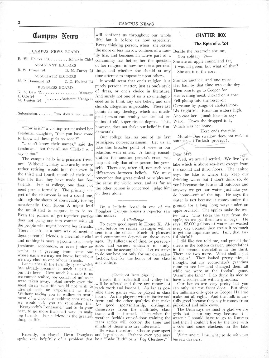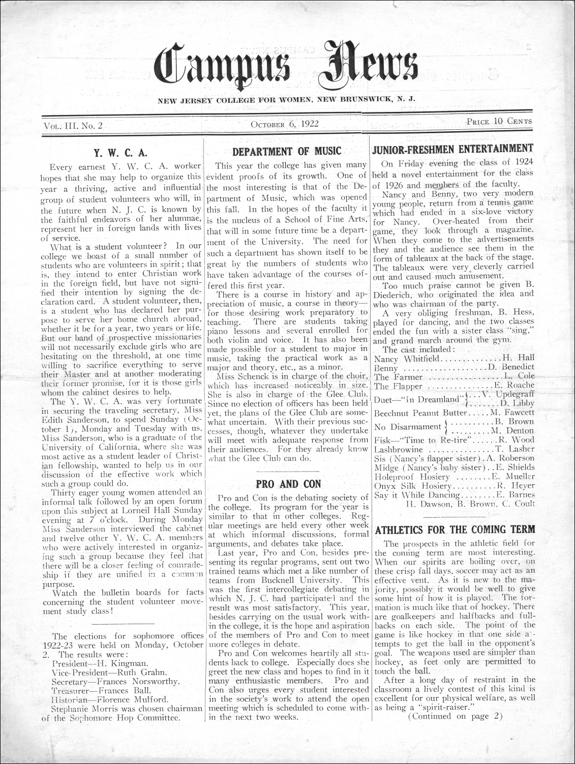 Campus News. Vol.03, No.2. October 6, 1922