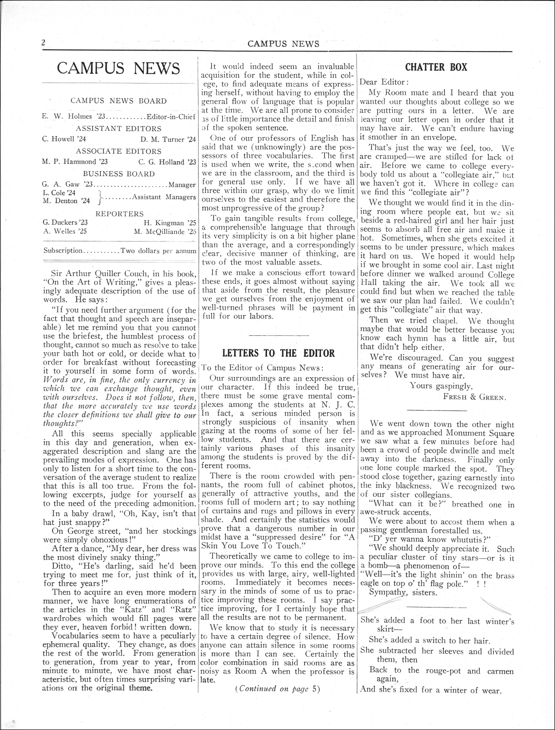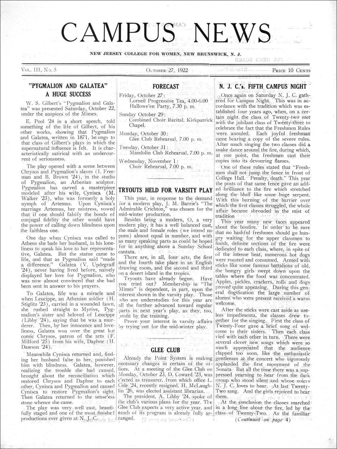 Campus News. Vol.03, No.5. October 27, 1922