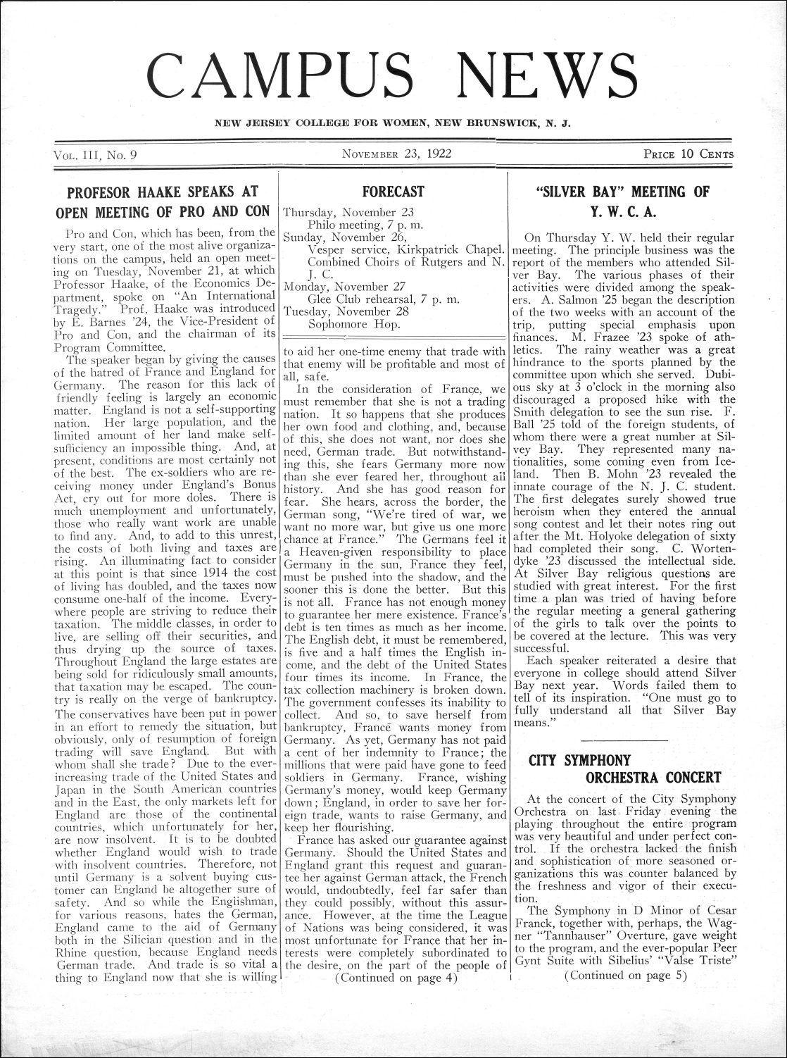 Campus News. Vol.03, No.9. November 23, 1922