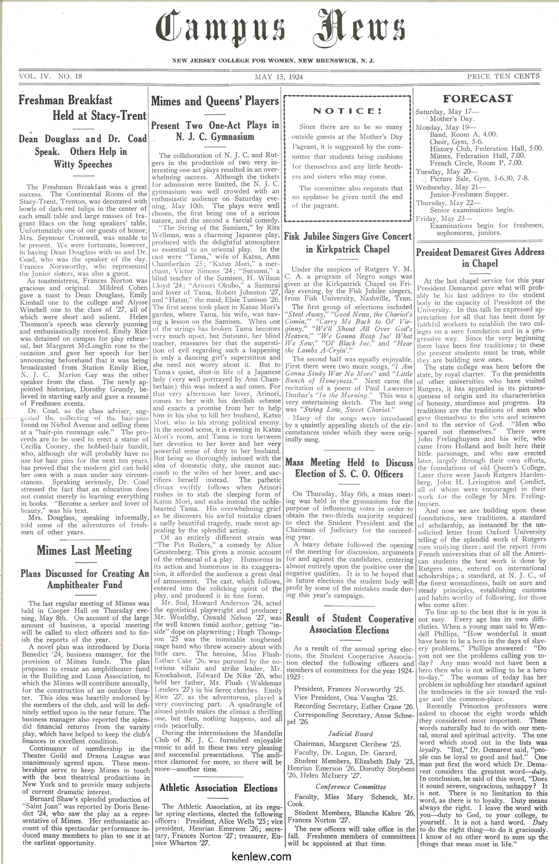 Campus News. Vol.04, No.18. May 15, 1924