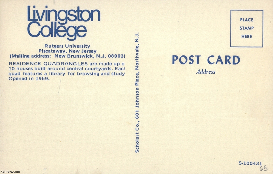 Residence Quadrangles, Livingston College, Rutgers University, New Brunswick, N.J. Verso |