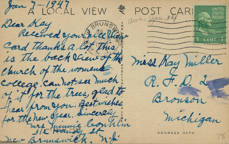 Recitation Hall, N.J. College For Women, New Brunswick, N.J. Verso |
